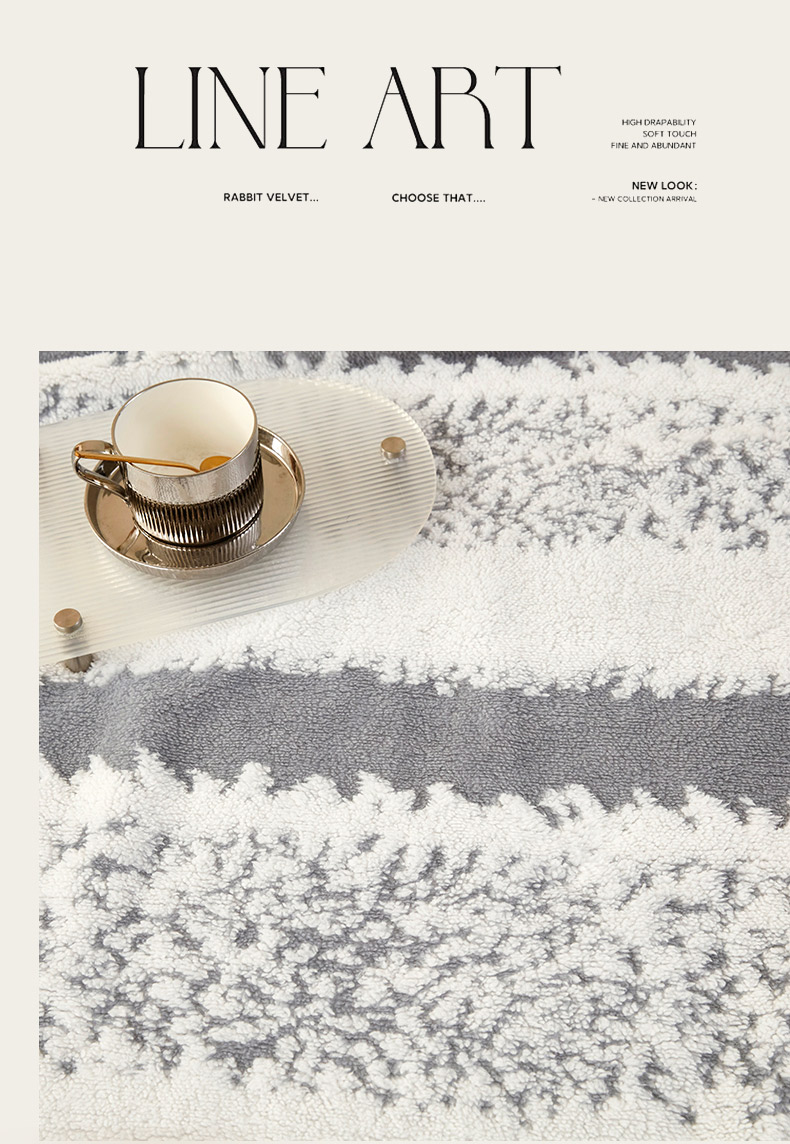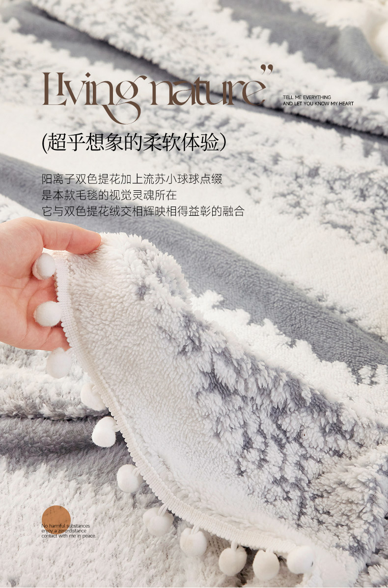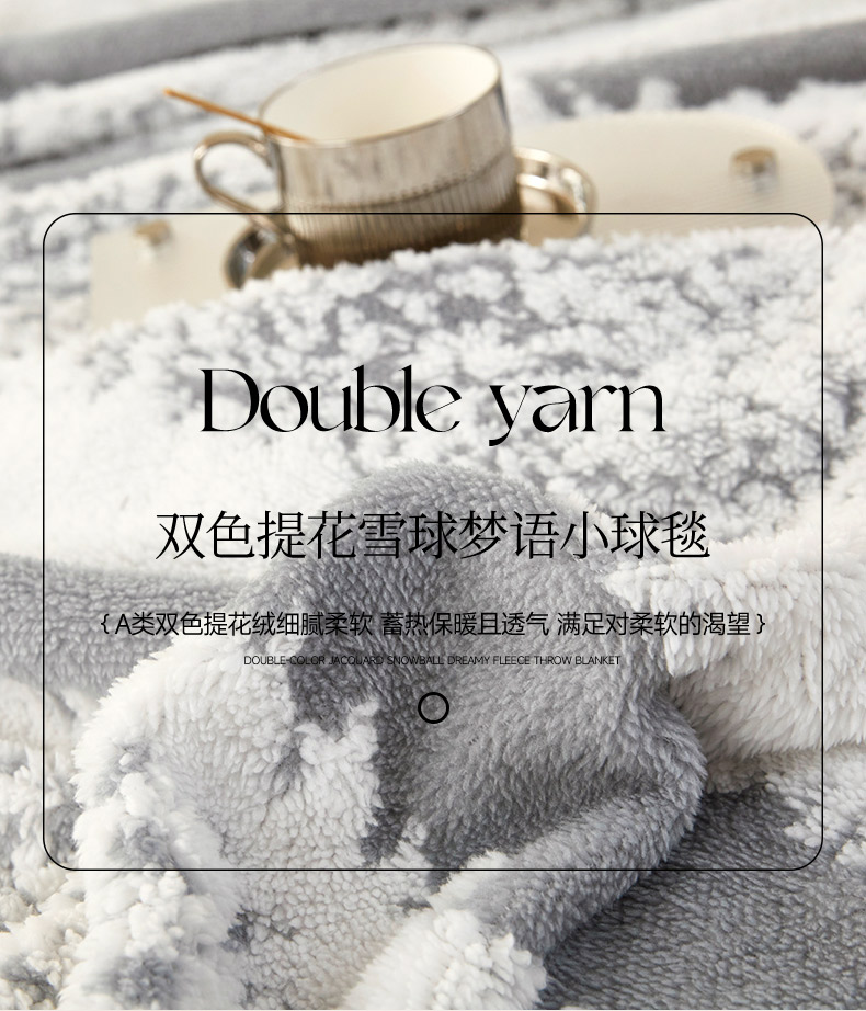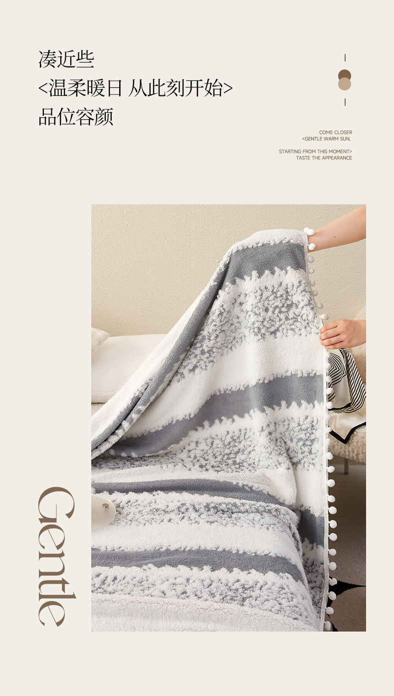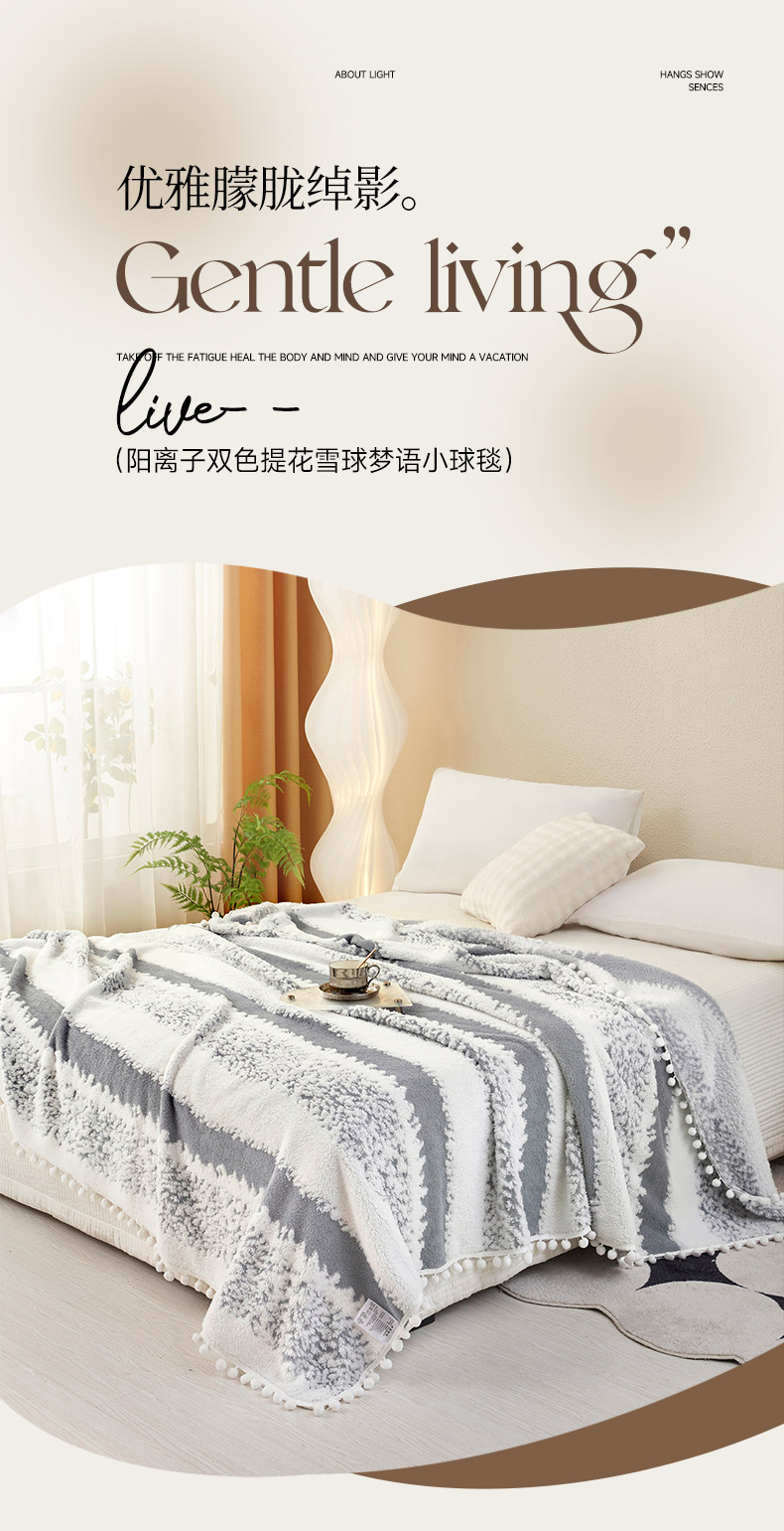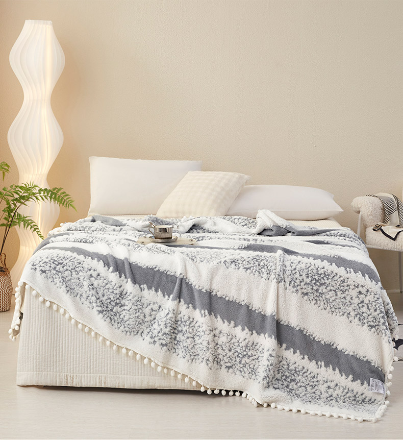 莱家富 2026新款跨境专供外贸出口300克重双面条纹阳离子提花毛球毛毯盖毯休闲小毯子冬季床单 雪球梦语烟灰