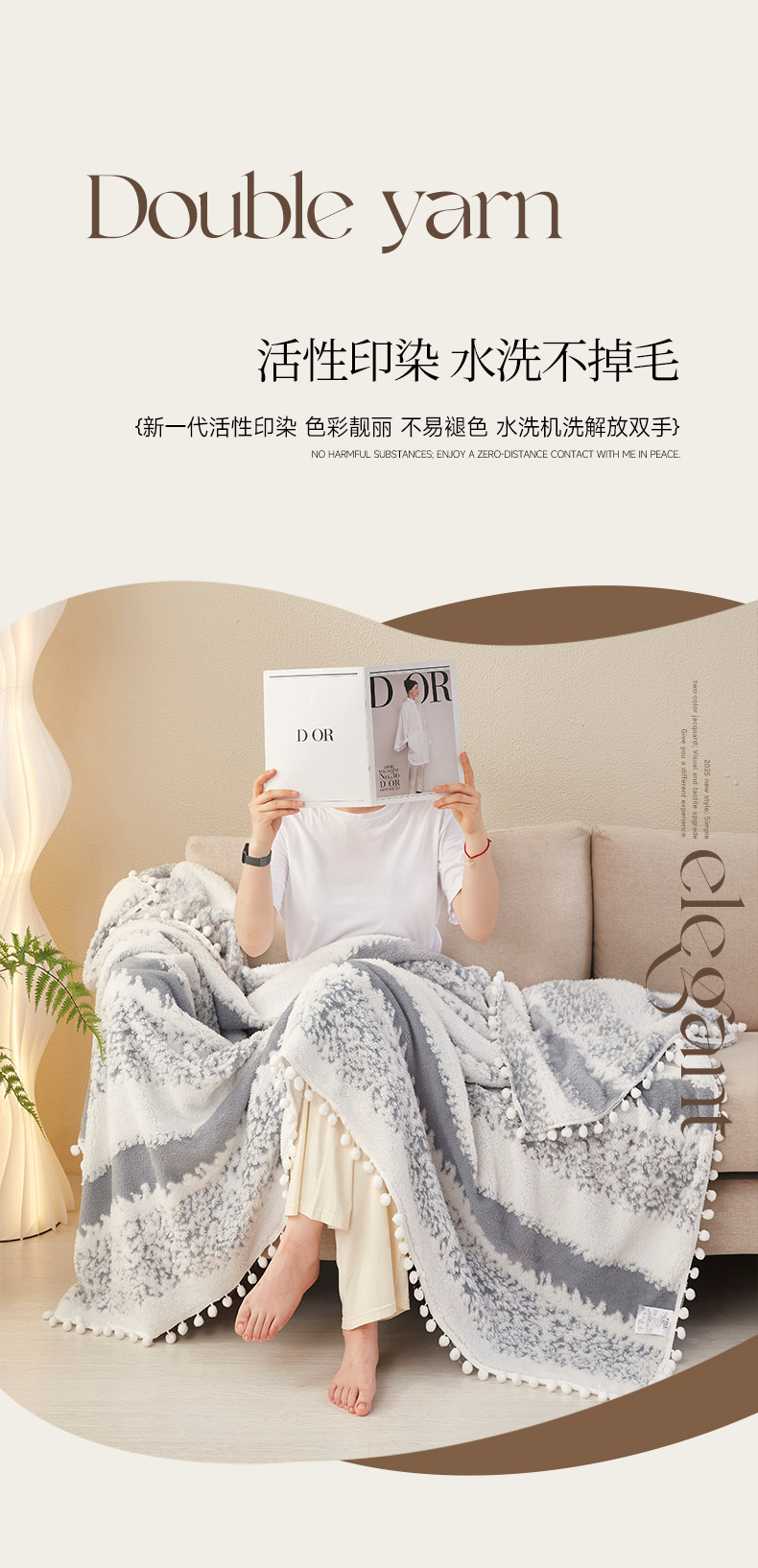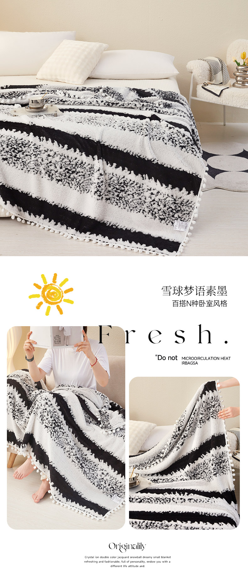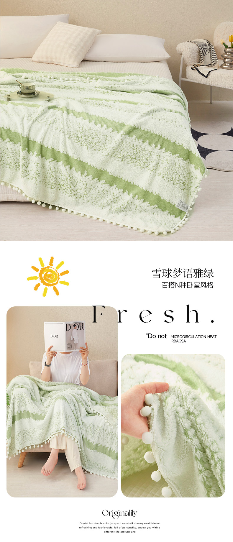 (总)莱家富 2026新款跨境专供外贸出口300克重双面条纹阳离子提花毛球毛毯盖毯休闲小毯子冬季床单,雪球梦语灿黄,雪球梦语素墨,雪球梦语桃粉,雪球梦语雅绿,雪球梦语烟灰