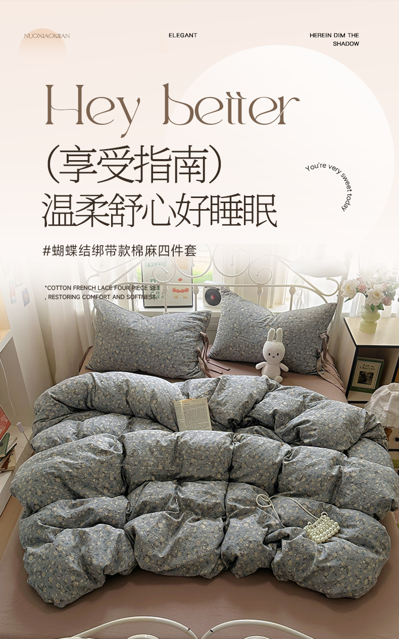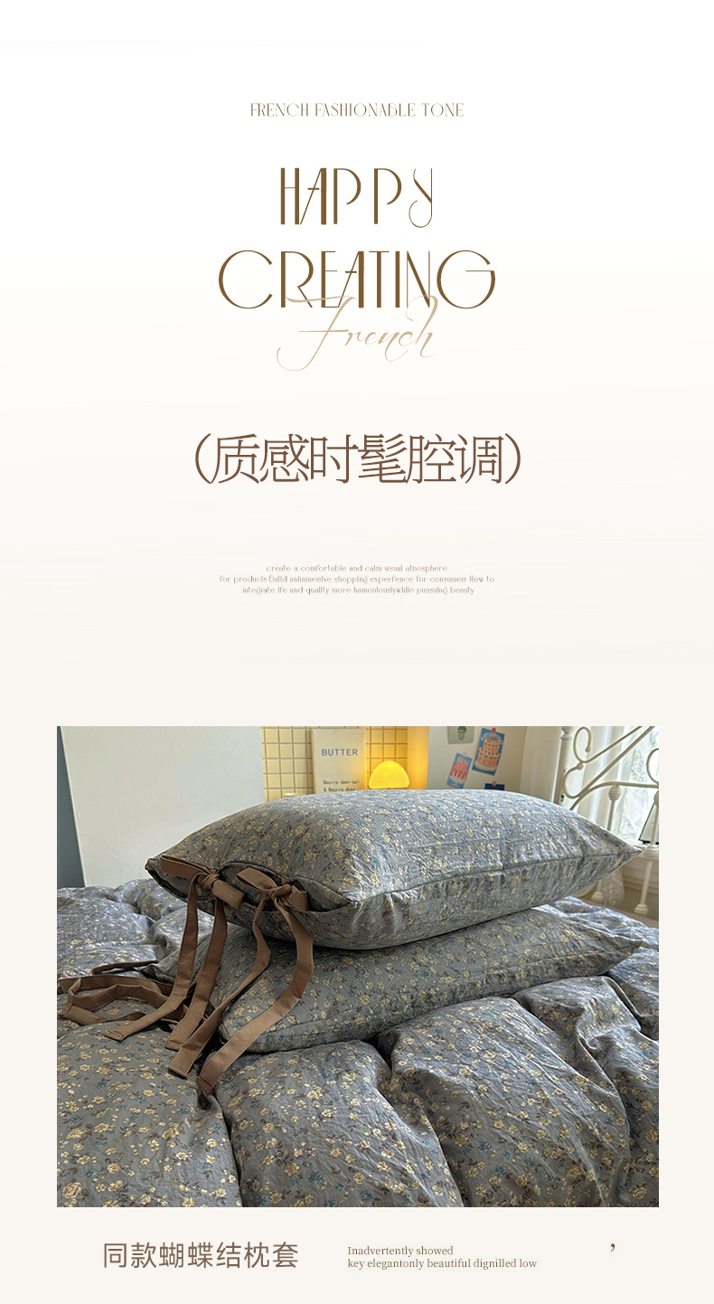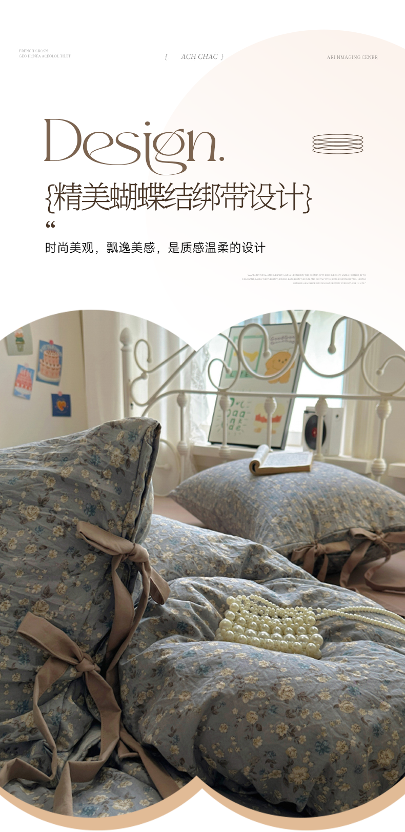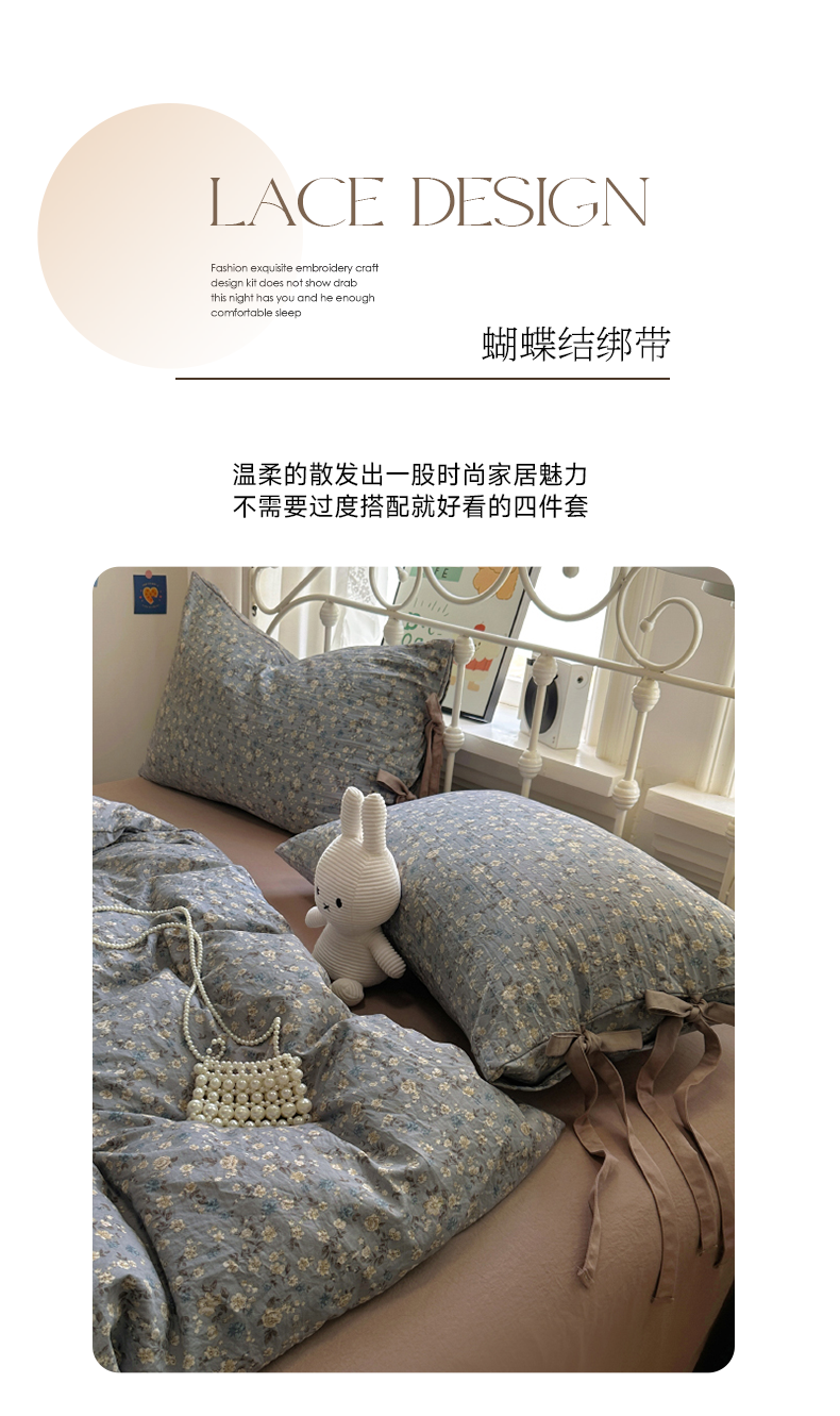 商品名称:漫仙阁家纺2025新款蝴蝶结绑带款四件套-碎花系列 晚风