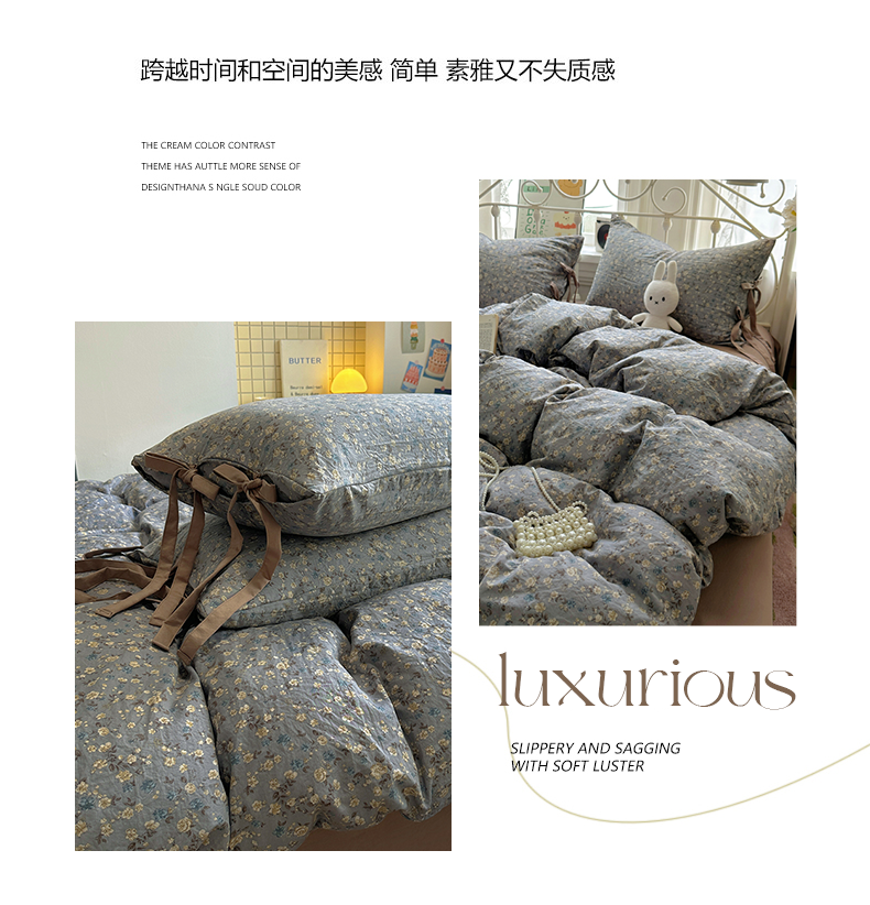 漫仙阁家纺2025新款蝴蝶结绑带款四件套-碎花系列 晚风