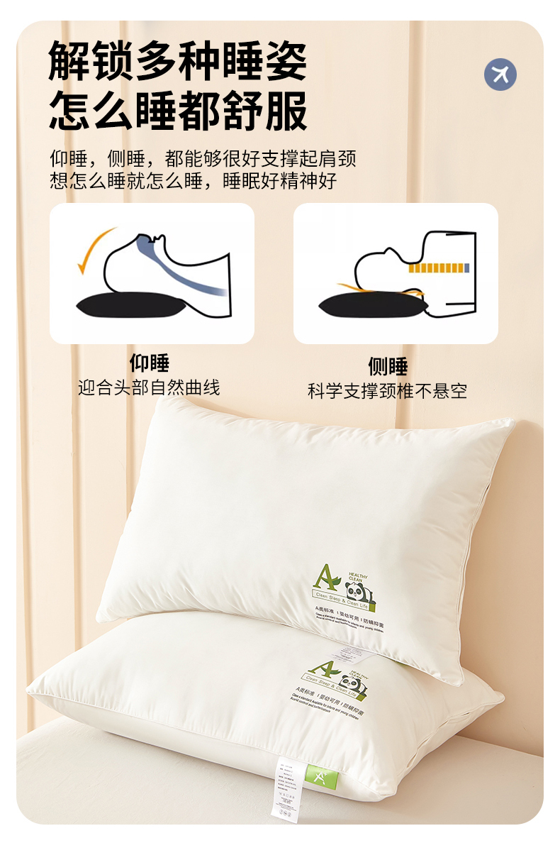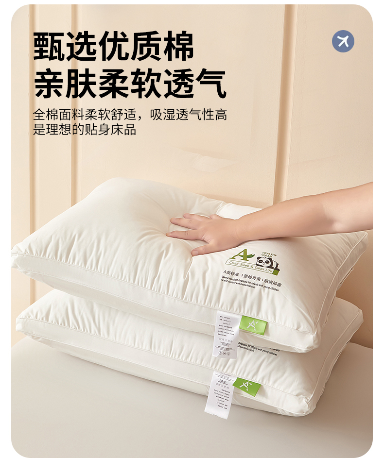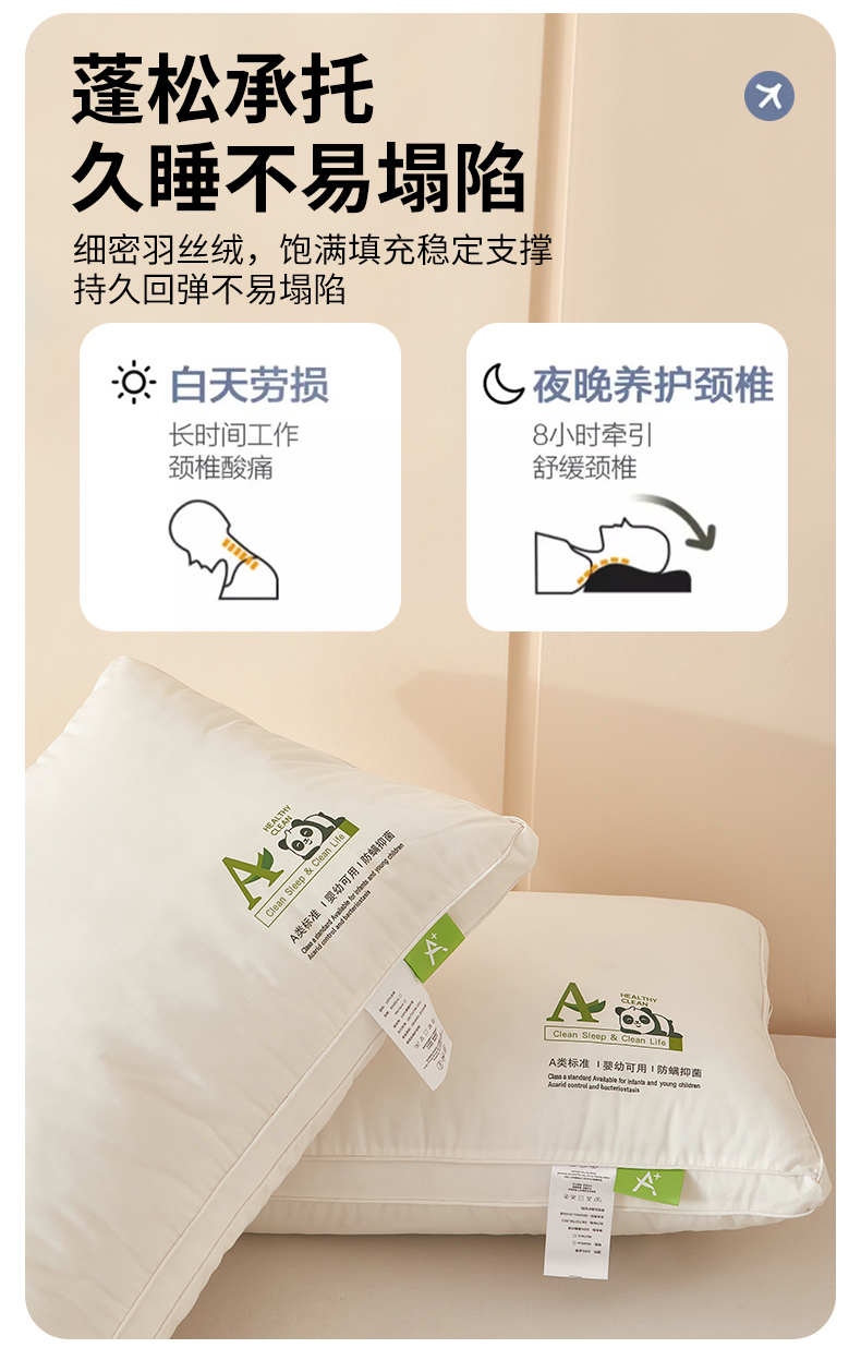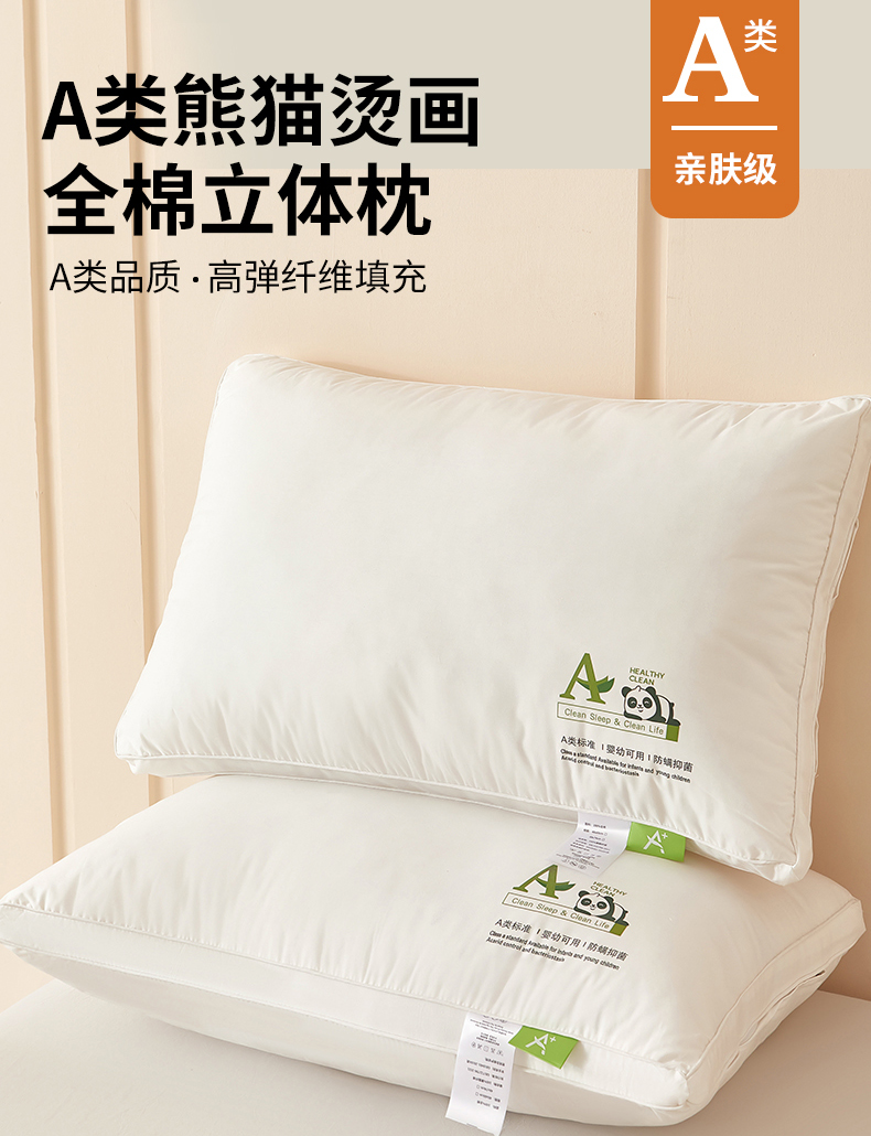 商品名称:(总)鼎晟纺 2025新款卡通全棉羽丝绒软萌熊猫烫画枕头学生纯棉枕芯护颈椎助家用枕头枕芯