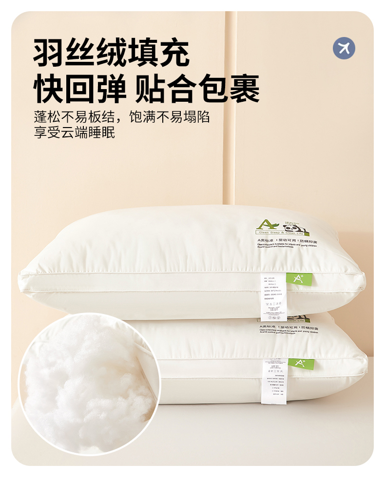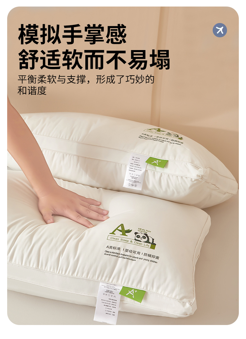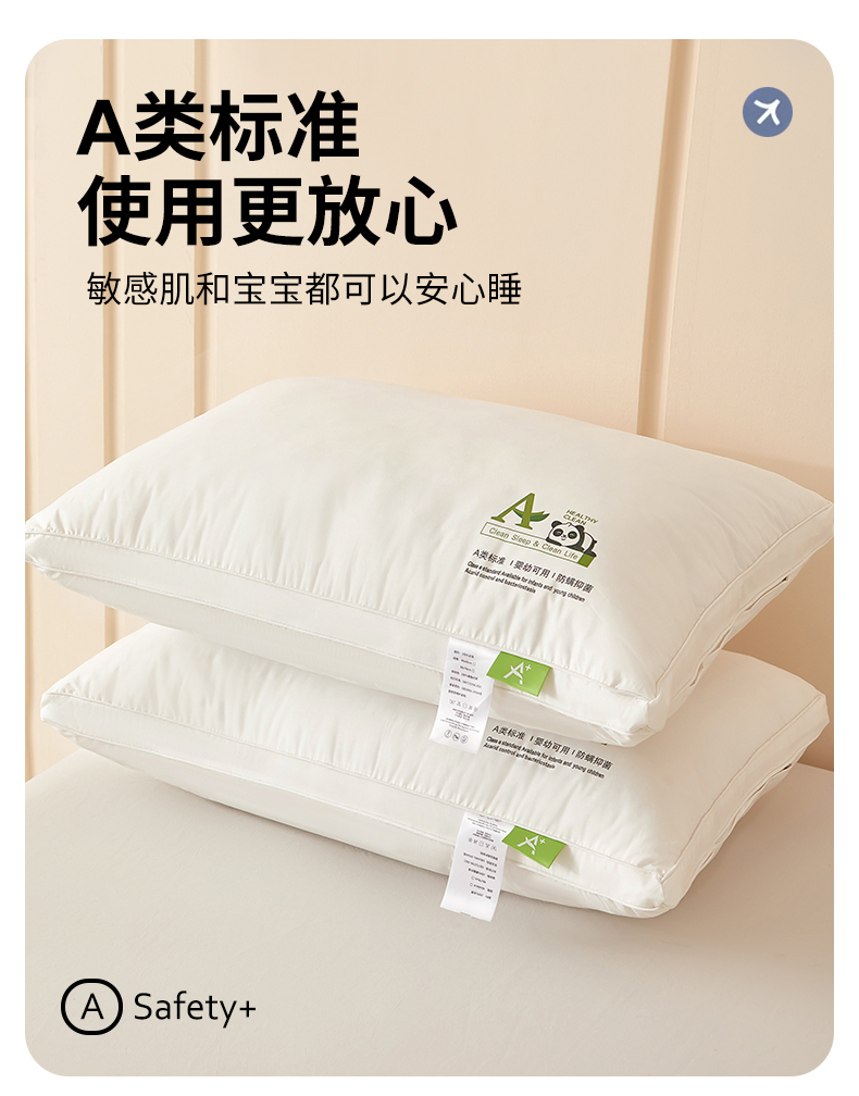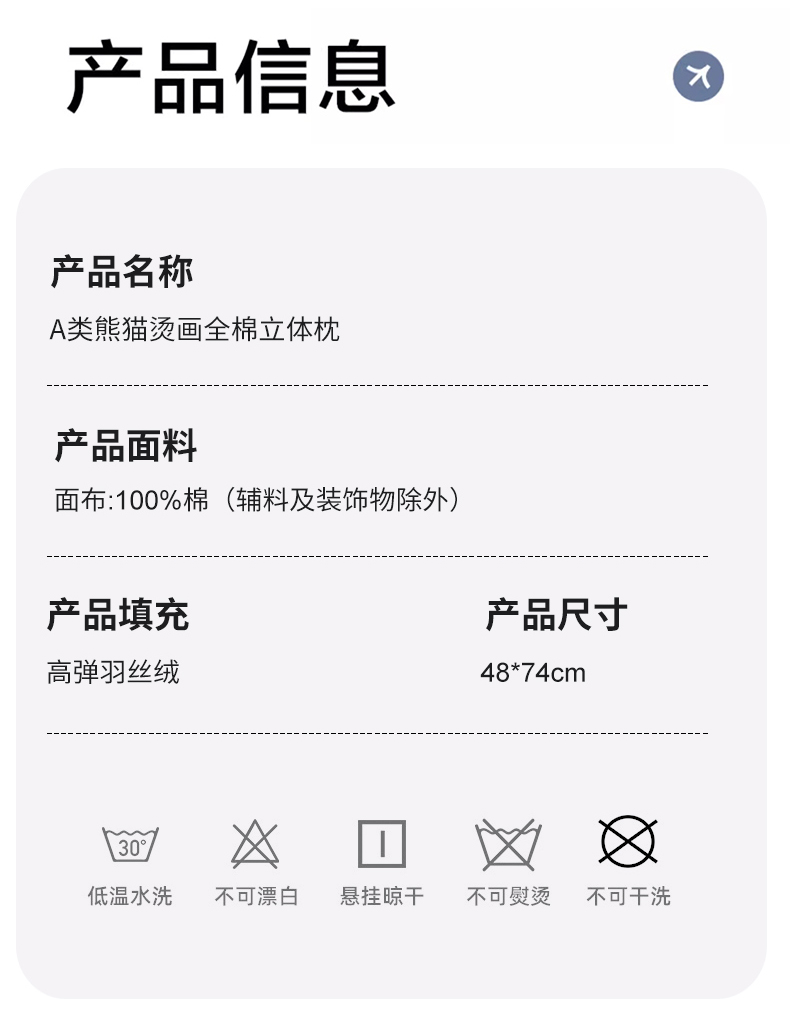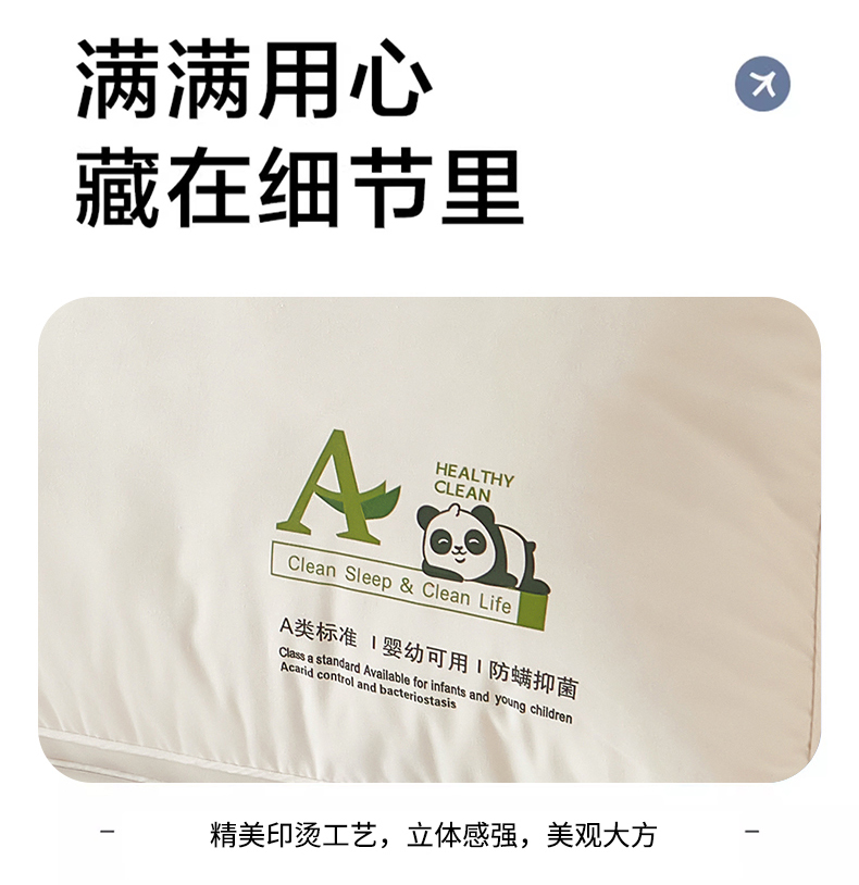 商品名称:(总)鼎晟纺 2025新款卡通全棉羽丝绒软萌熊猫烫画枕头学生纯棉枕芯护颈椎助家用枕头枕芯