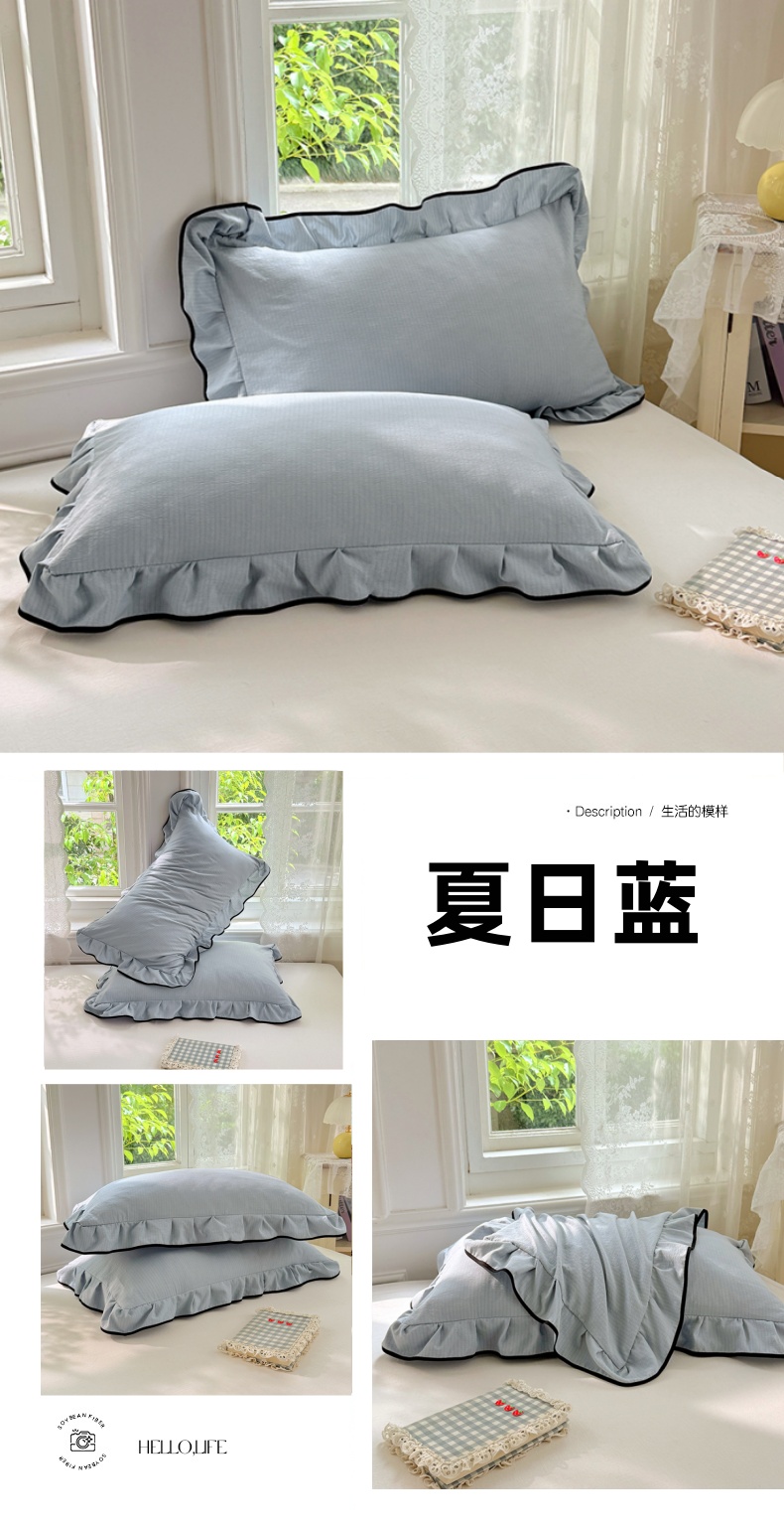 商品名称:圣比熊 2025新款云感双层纱花边枕套宿舍学生48x74一对枕芯内胆套 夏日蓝