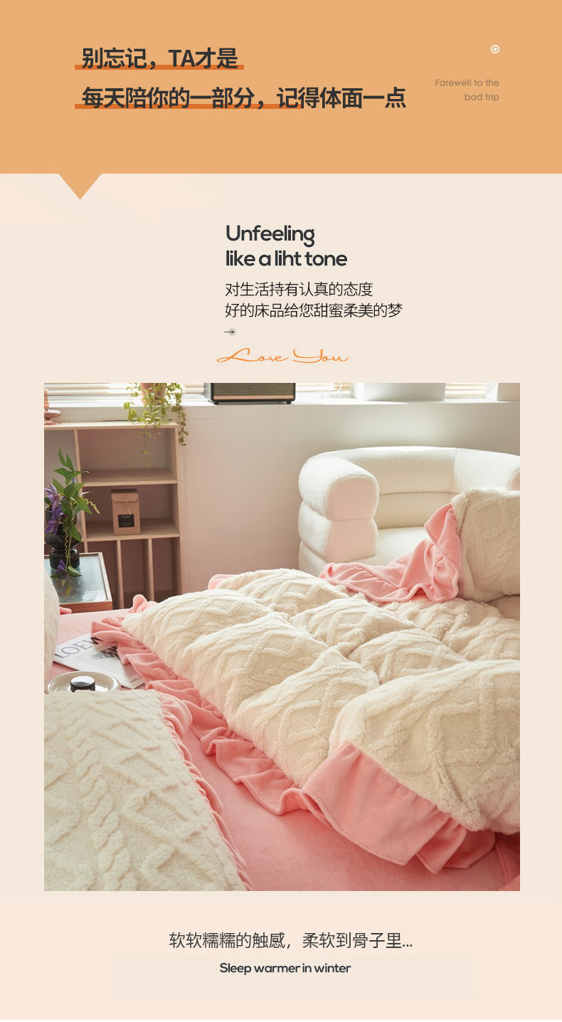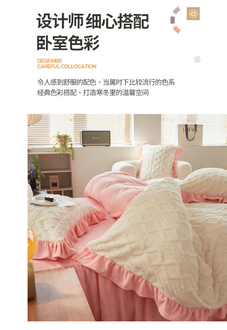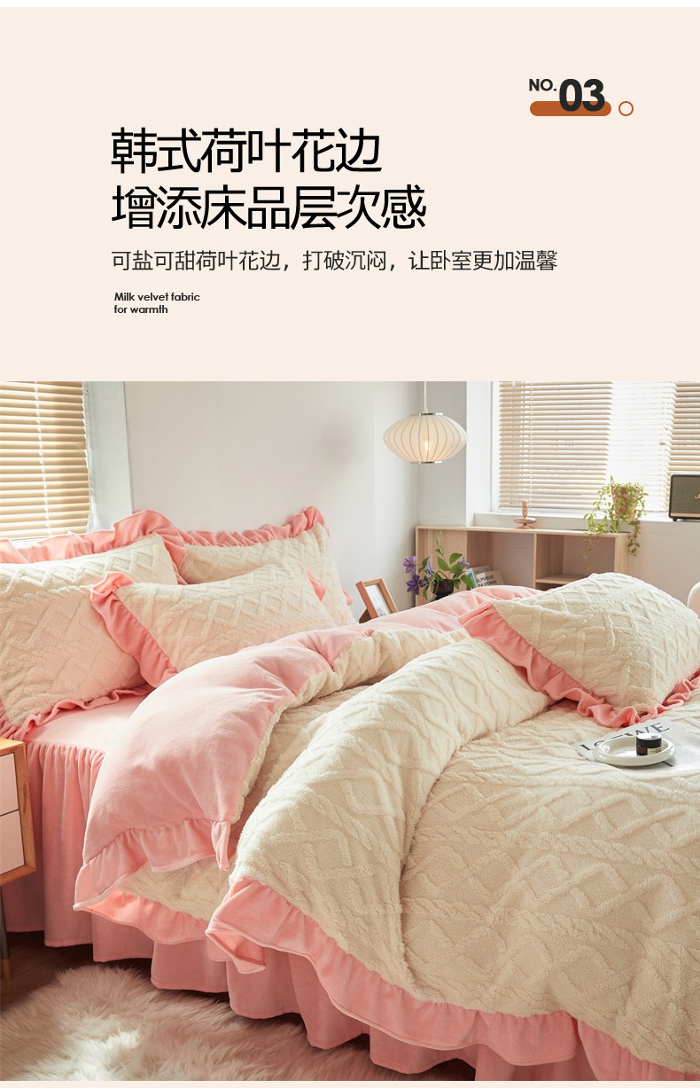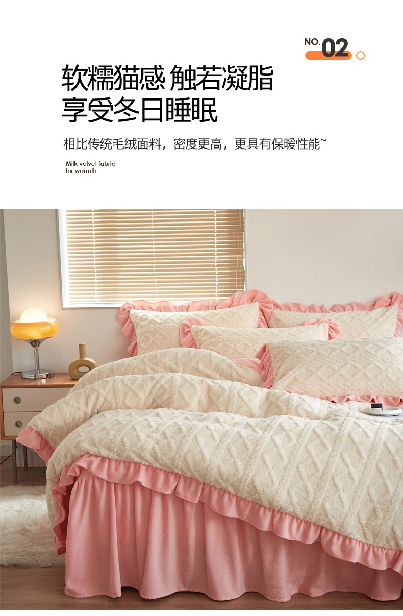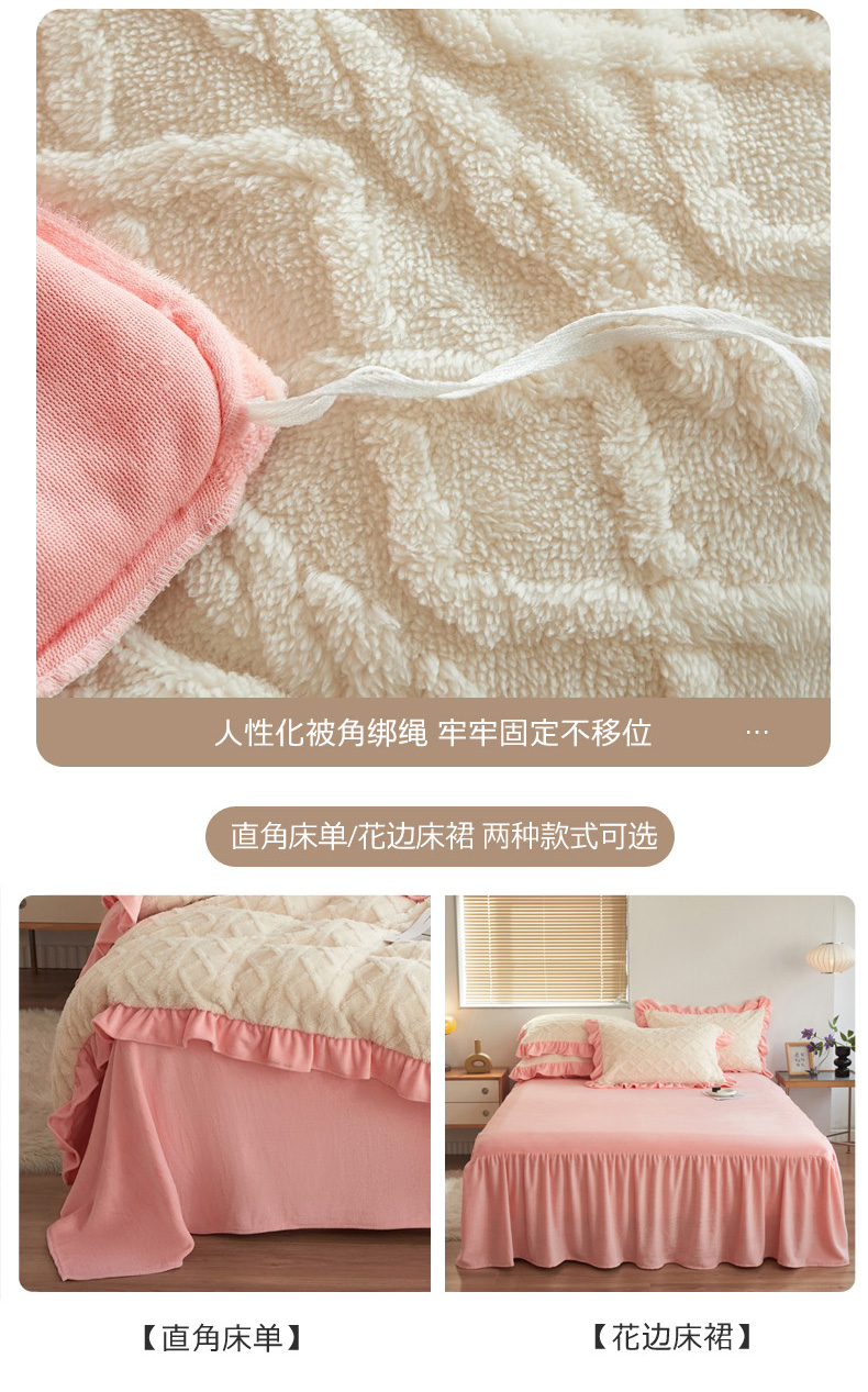 当前位置: 91家纺网 > 商品网购 > 床品套件 > 四件套 > 牛奶绒四件套 > 睡美人 2025新款韩版塔芙绒牛奶绒床单床裙床笠款四件套 依情白+奶油粉