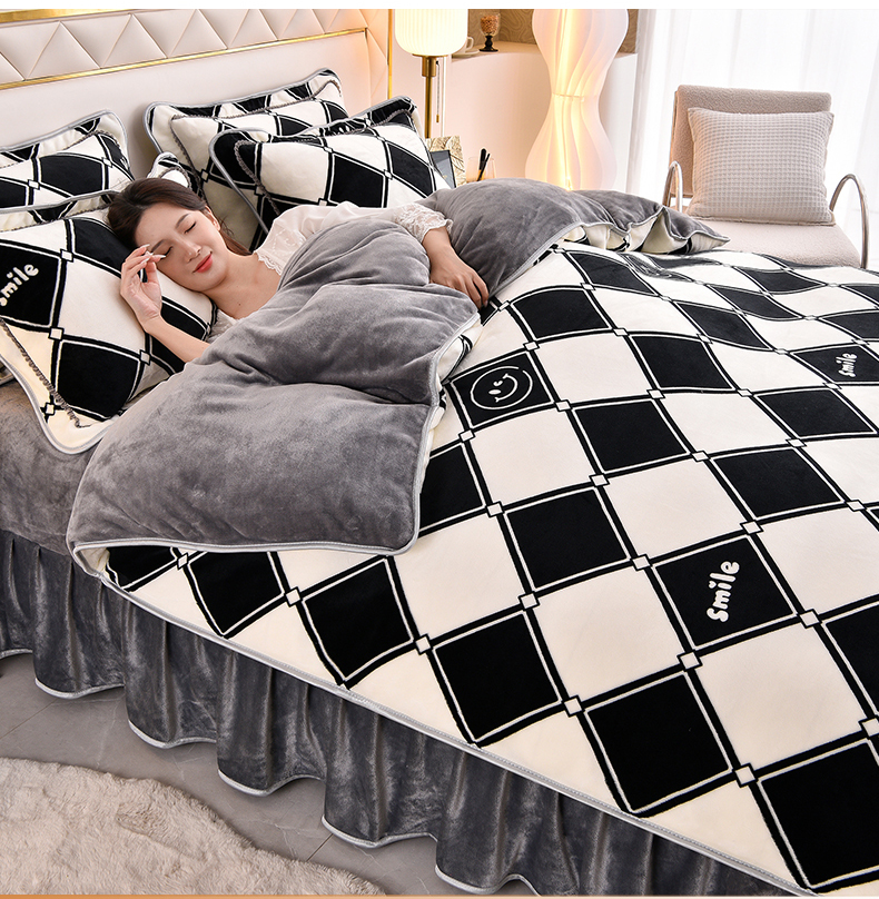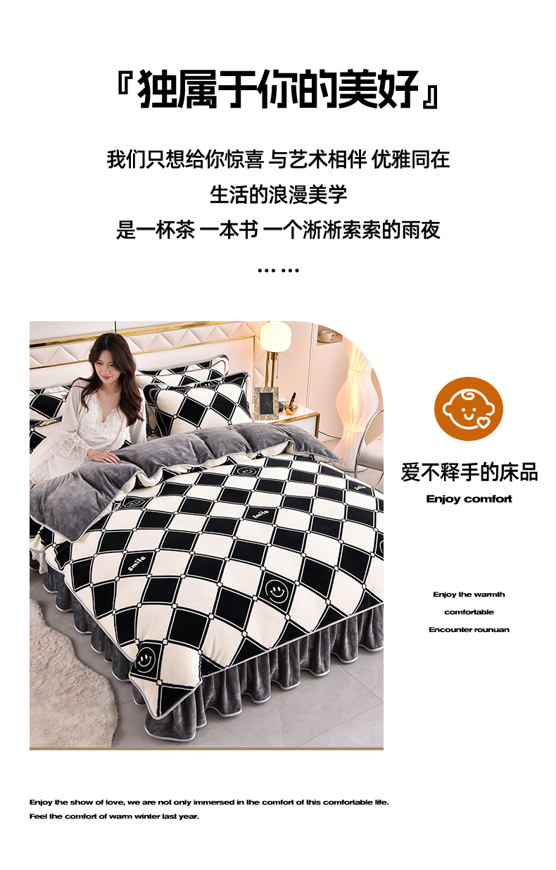 启扬 2025直播爆款新款8.5斤加厚高克重牛奶绒四件套床裙款法莱绒宝宝绒金貂绒 遇见,遇见