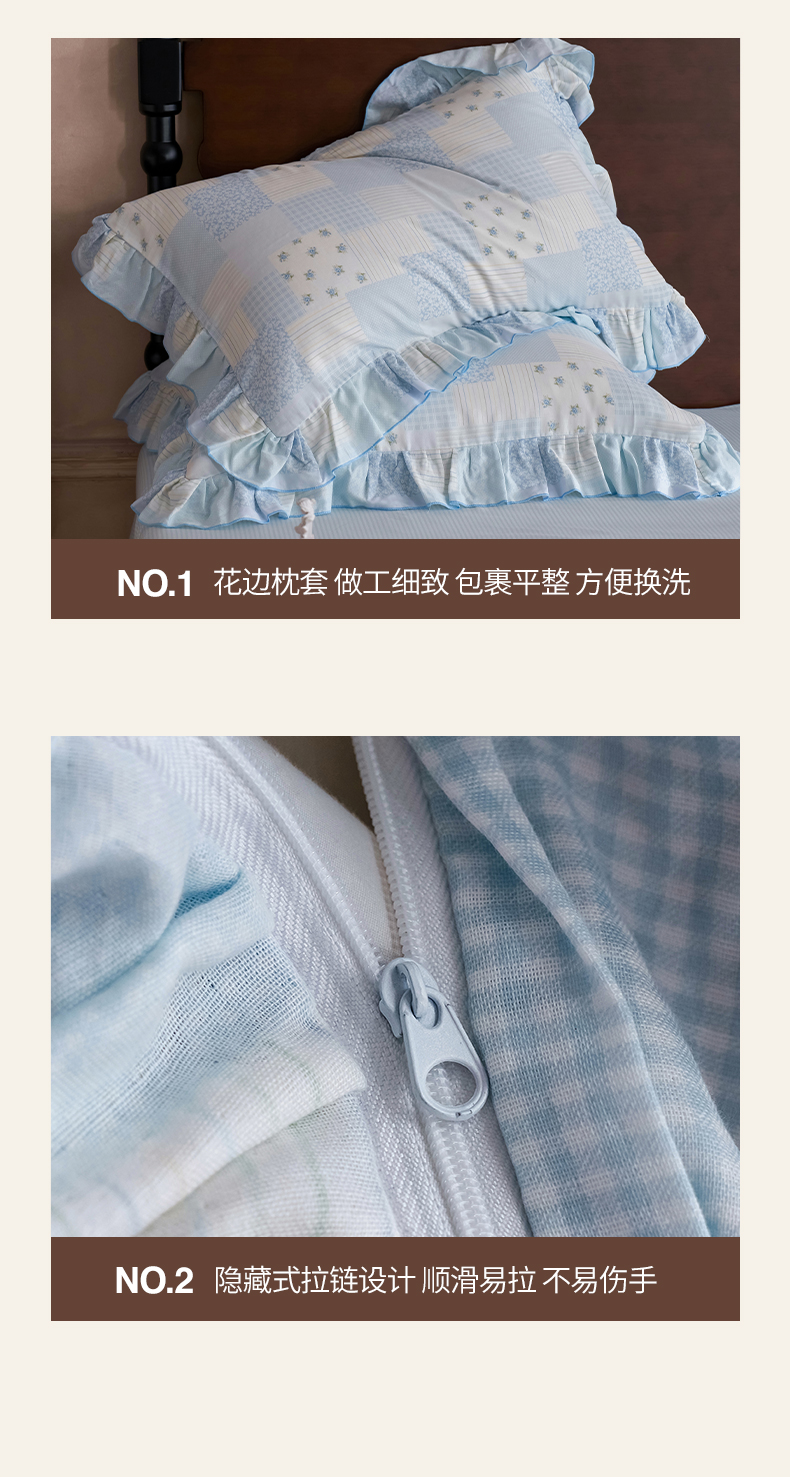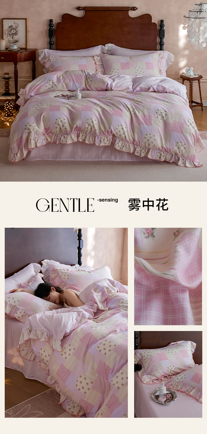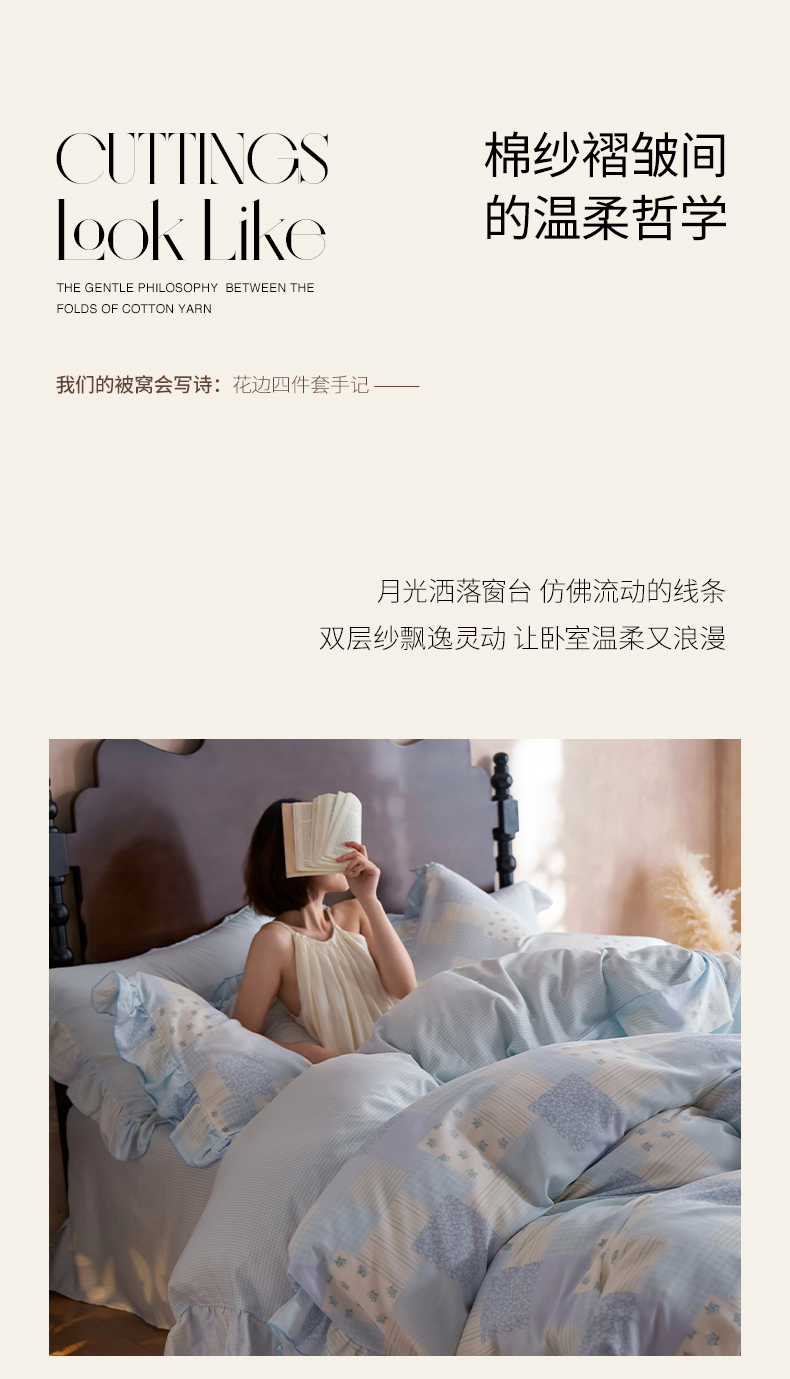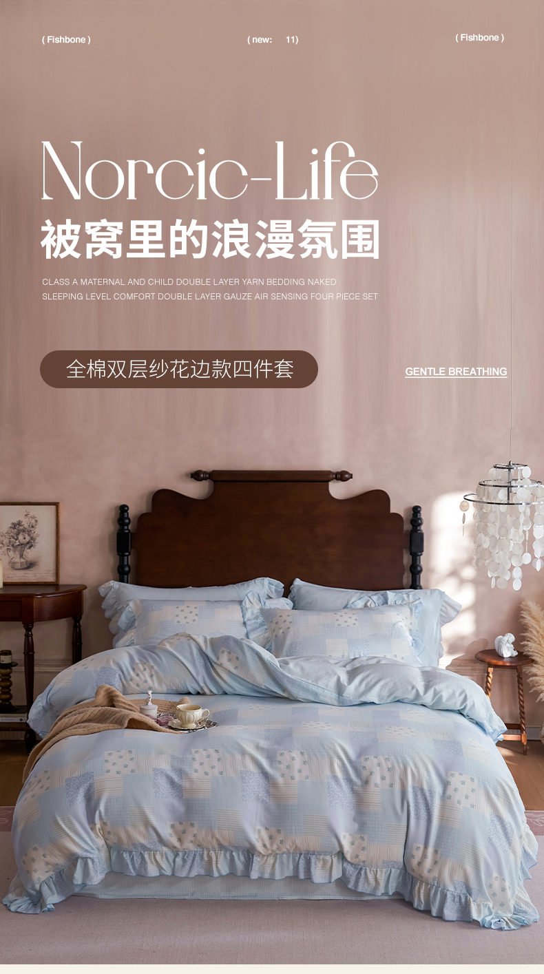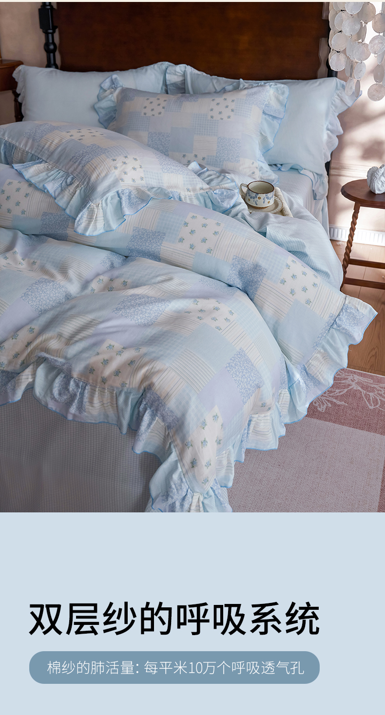 当前位置: 91家纺网 > 商品网购 > 床品套件 > 四件套 > 双层纱四件套 > 安莱生活 2025新款全棉纯棉双层纱花边款四件套 绮之梦
