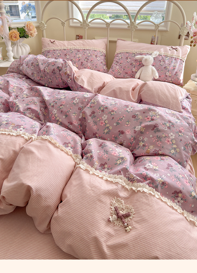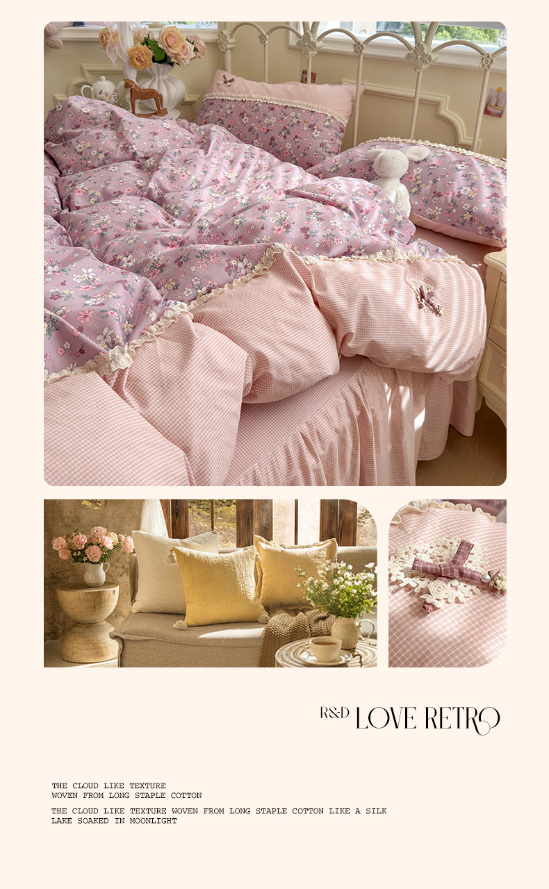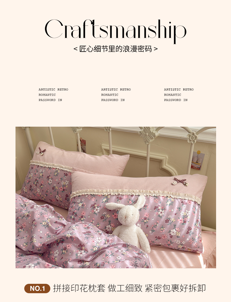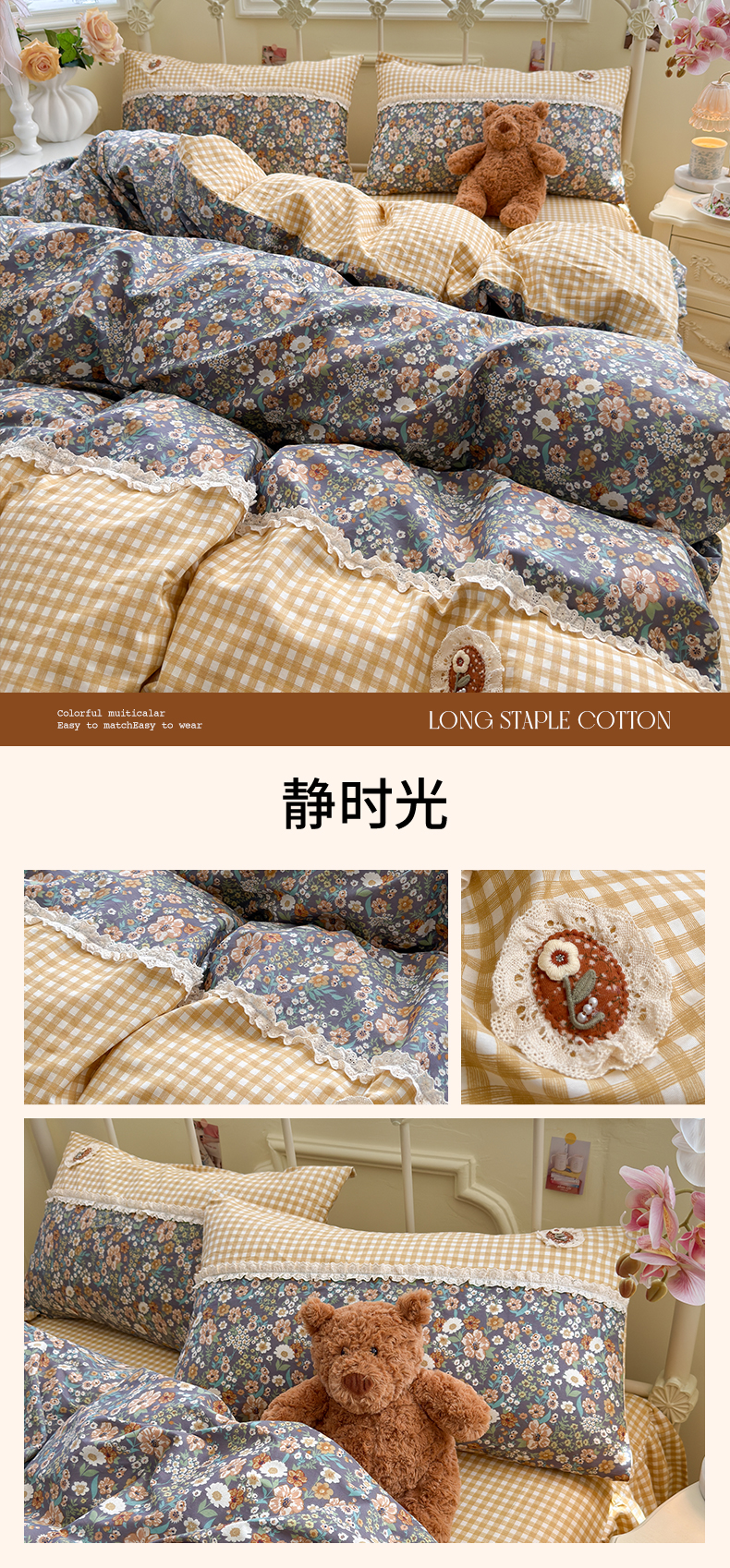 当前位置: 91家纺网 > 商品网购 > 床品套件 > 四件套 > 其它四件套 > 安莱生活 2025新款全棉纯棉小碎花刺绣花边款四件套 紫萝梦