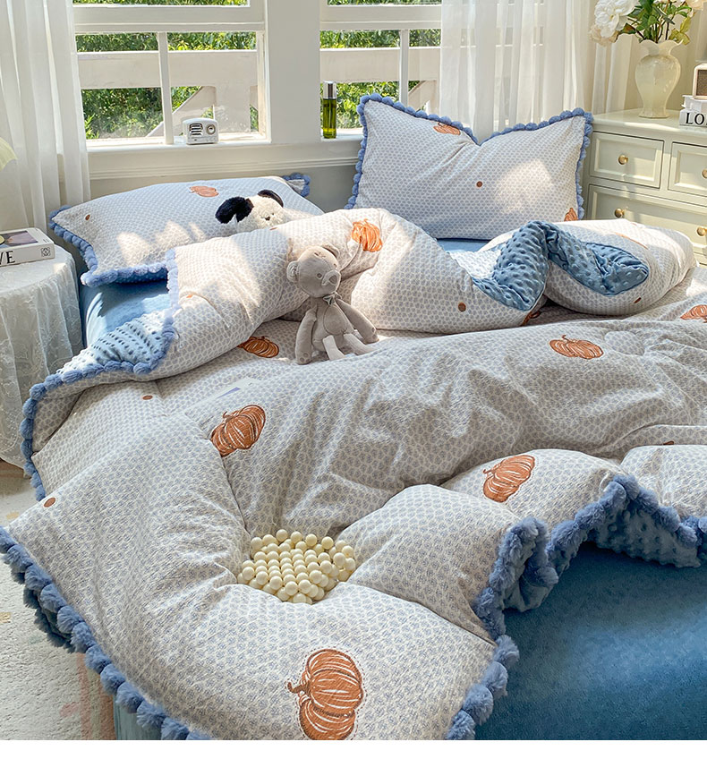 米乐被业 2025新款毛球豆豆被卡通被子被芯冬被 可爱南瓜