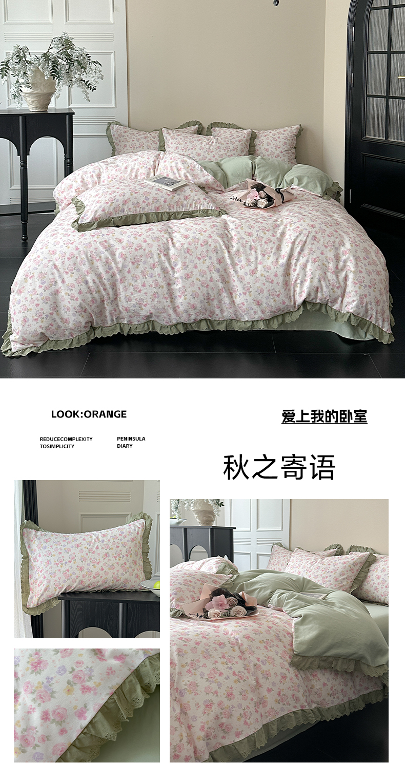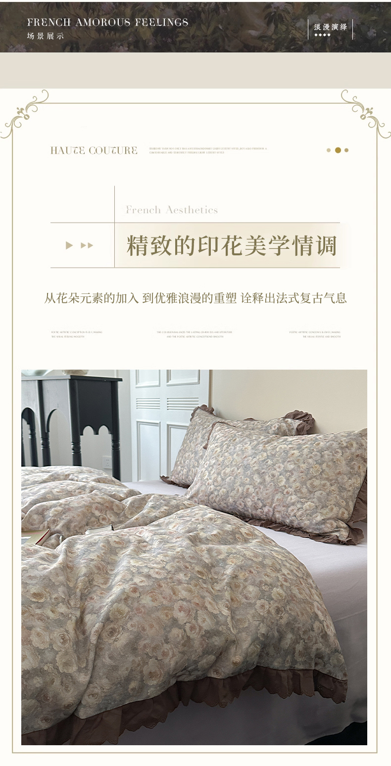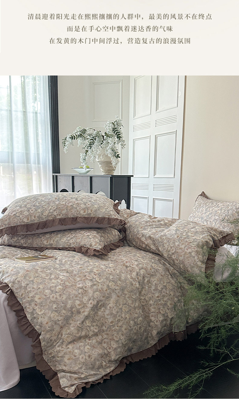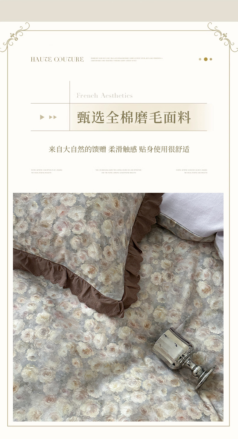 当前位置: 91家纺网 > 商品网购 > 床品套件 > 四件套 > 全棉普通四件套 > 三朵家纺 2025新款秋冬全棉纯棉加厚磨毛法式花边四件套 晚风告白