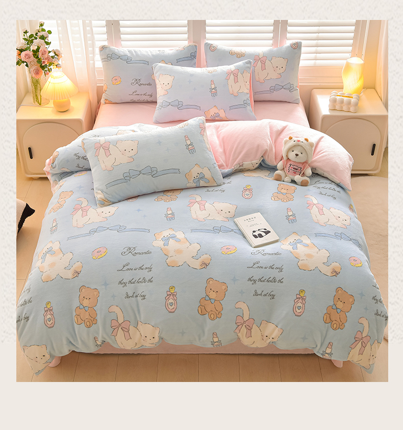 鑫喜莱家纺 2025新款加厚牛奶绒卡通印花四件套 可爱小狗