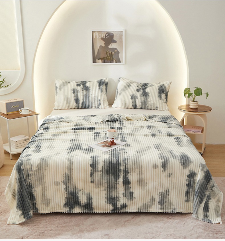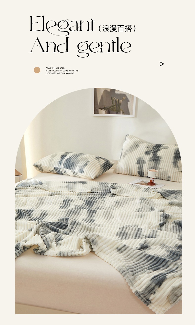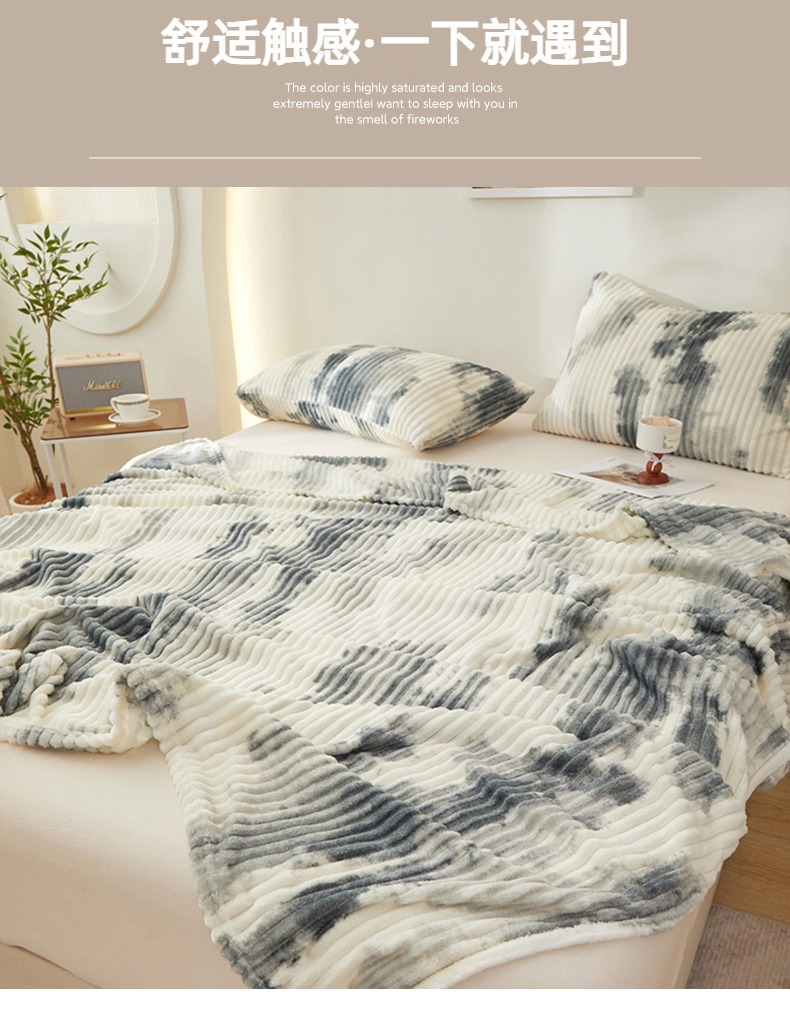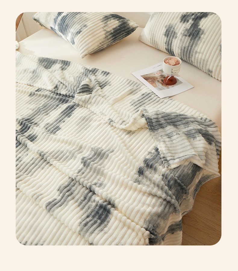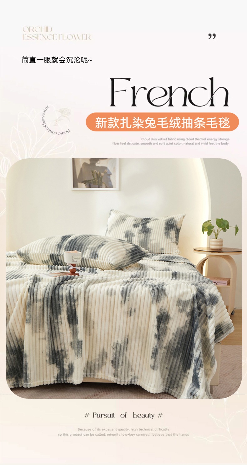 (总)楼兰公主 2025新款跨境外贸扎染兔毛抽条保暖加厚盖毯毛毯毯子-印花系列