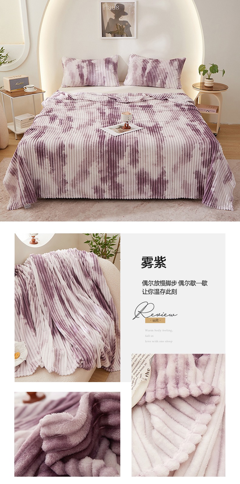 (总)楼兰公主毛毯专供 2025新款300克韩式风阳离子抽条毛毯,阳离子-粉,阳离子-黄,阳离子-灰,阳离子-咖,阳离子-蓝,阳离子-紫