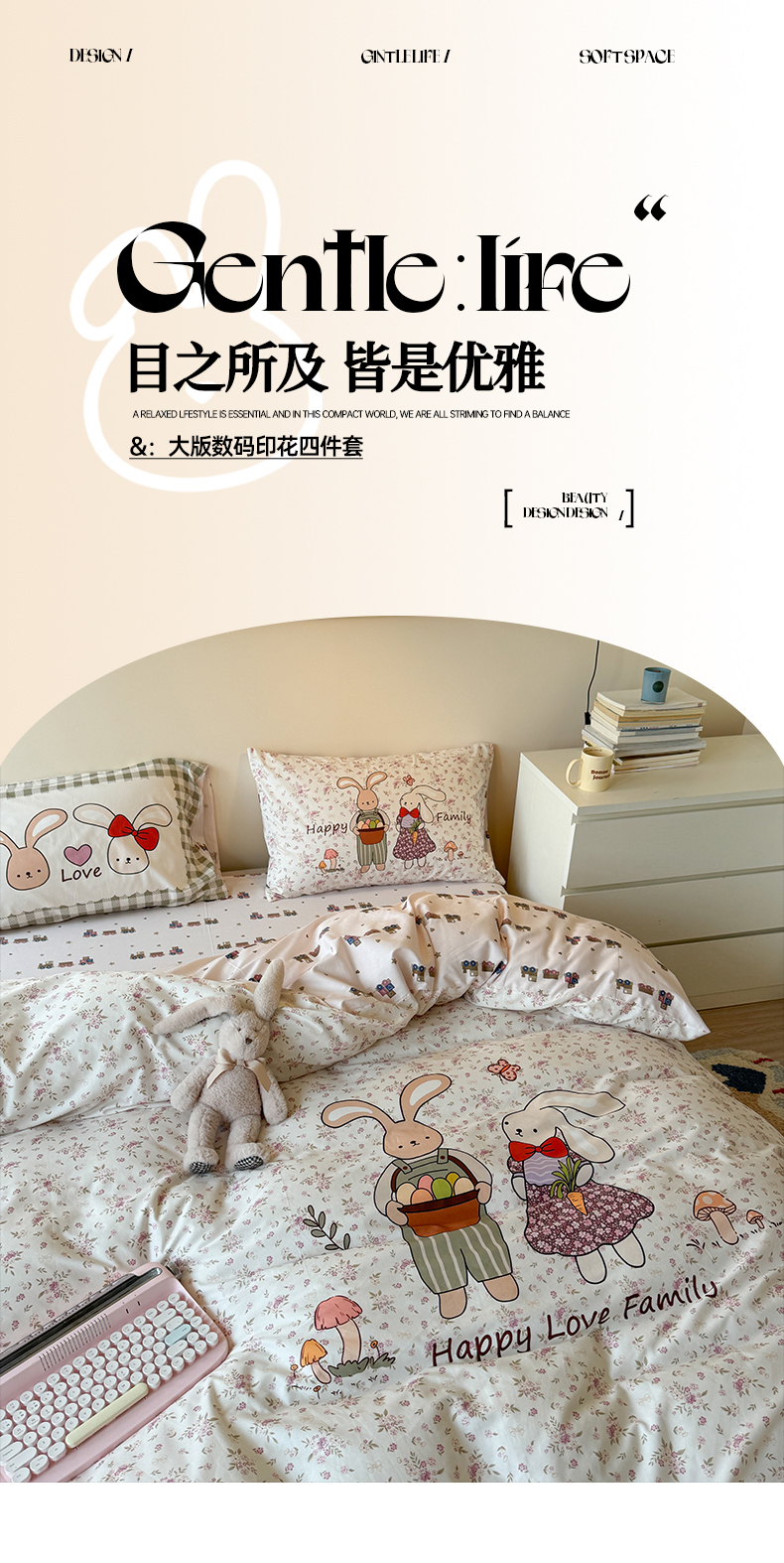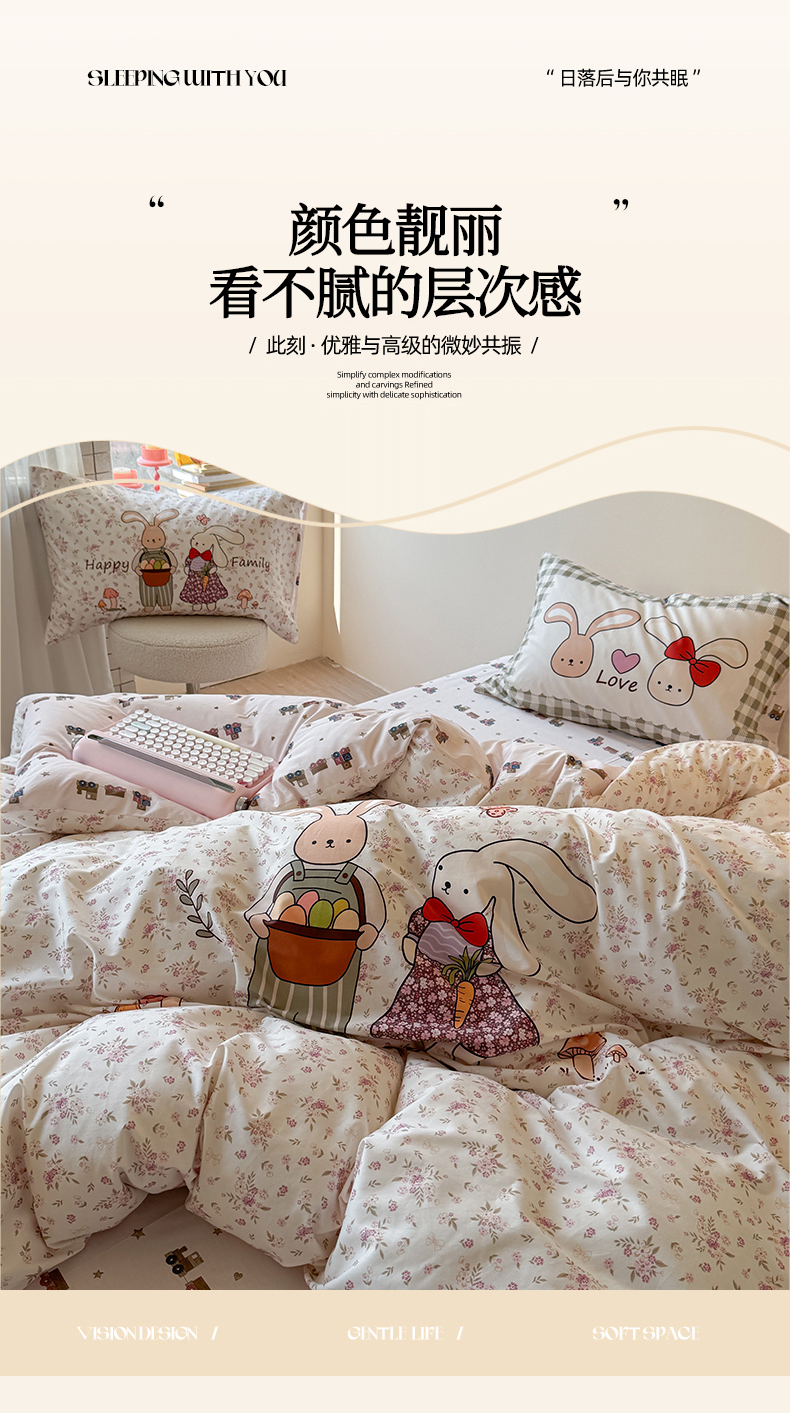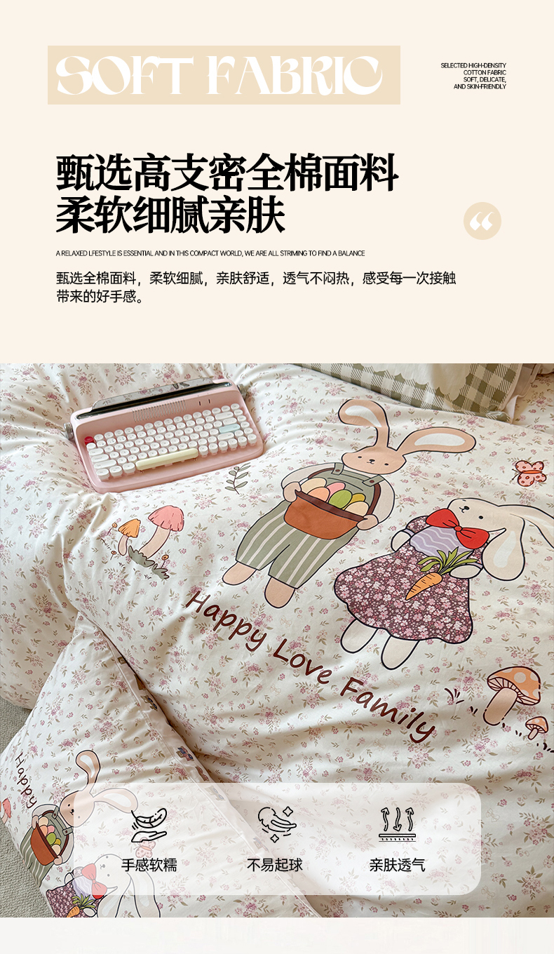 当前位置: 91家纺网 > 商品网购 > 床品套件 > 四件套 > 全棉普通四件套 > 寐居家纺 2025新款亲肤舒适全棉纯棉数码大阪印花四件套 甜甜兔