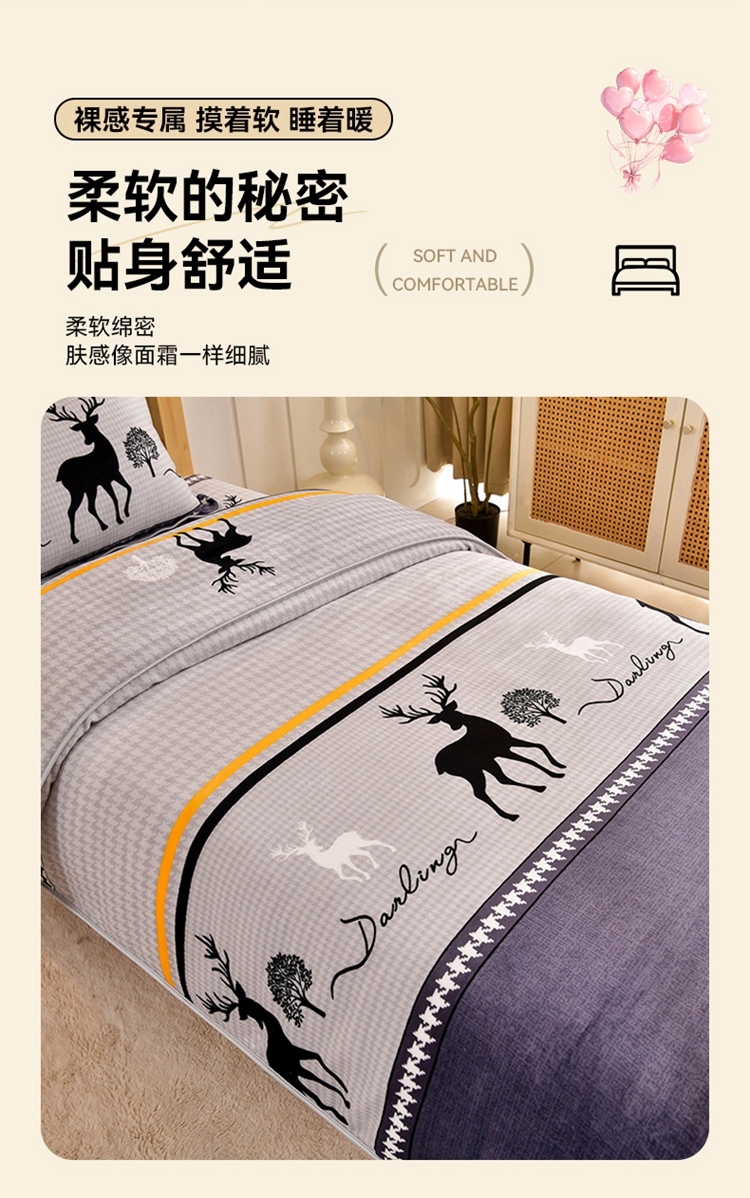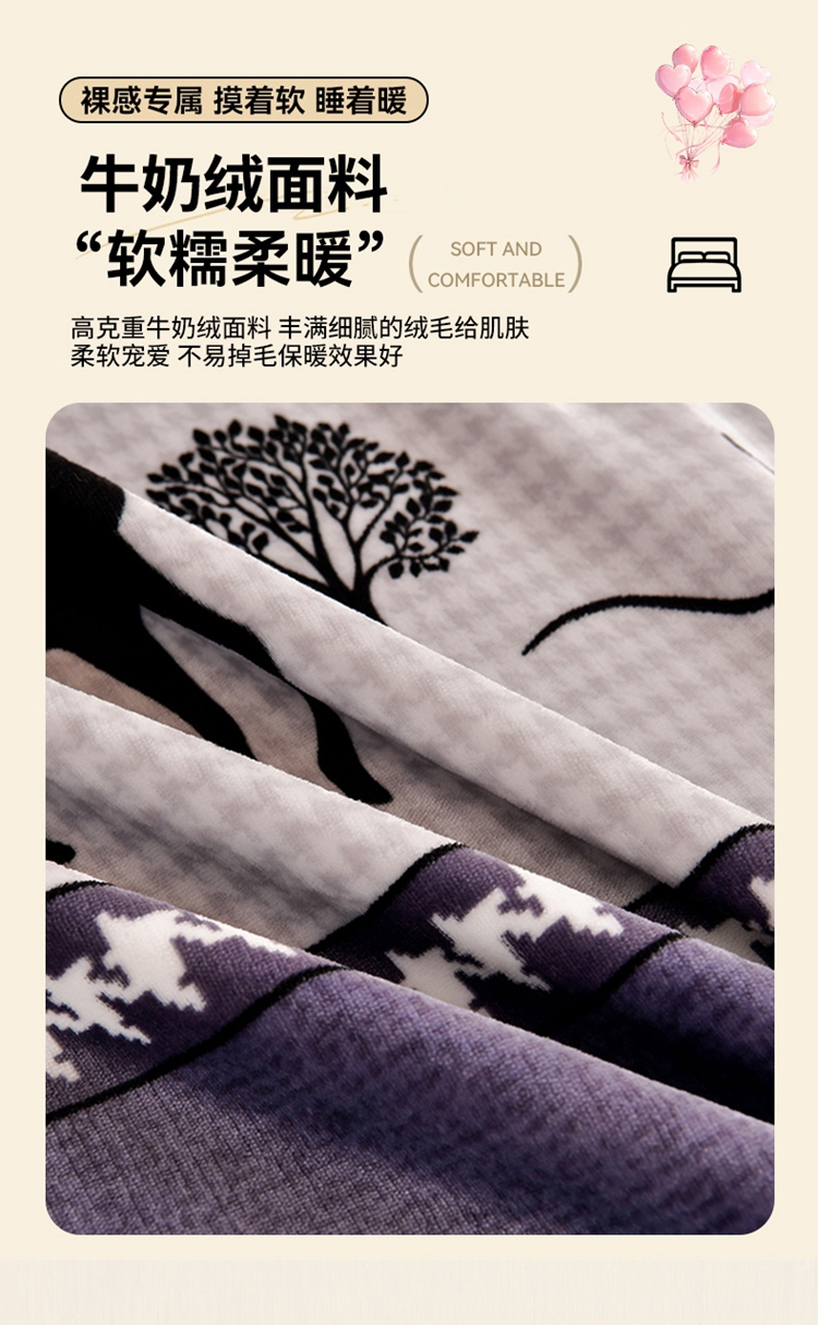 馨梦缘2025新款爆款高克重印花牛奶绒法莱绒学生三件套 发财树