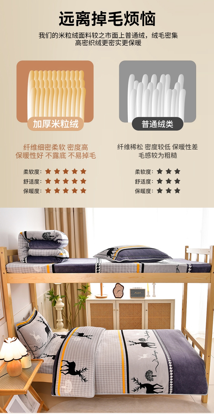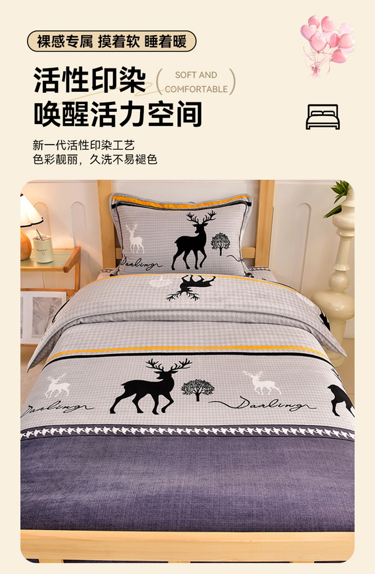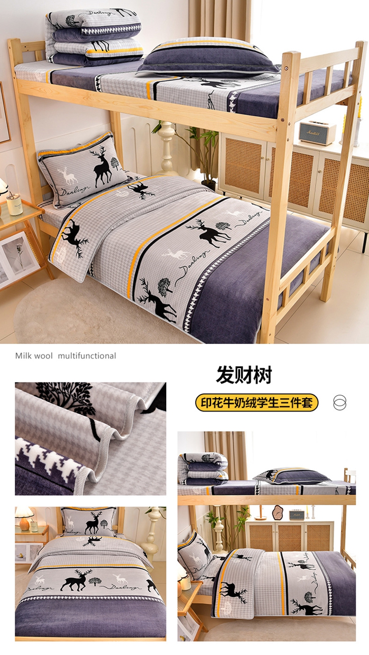 商品名称:馨梦缘2025新款爆款高克重印花牛奶绒法莱绒学生三件套 发财树