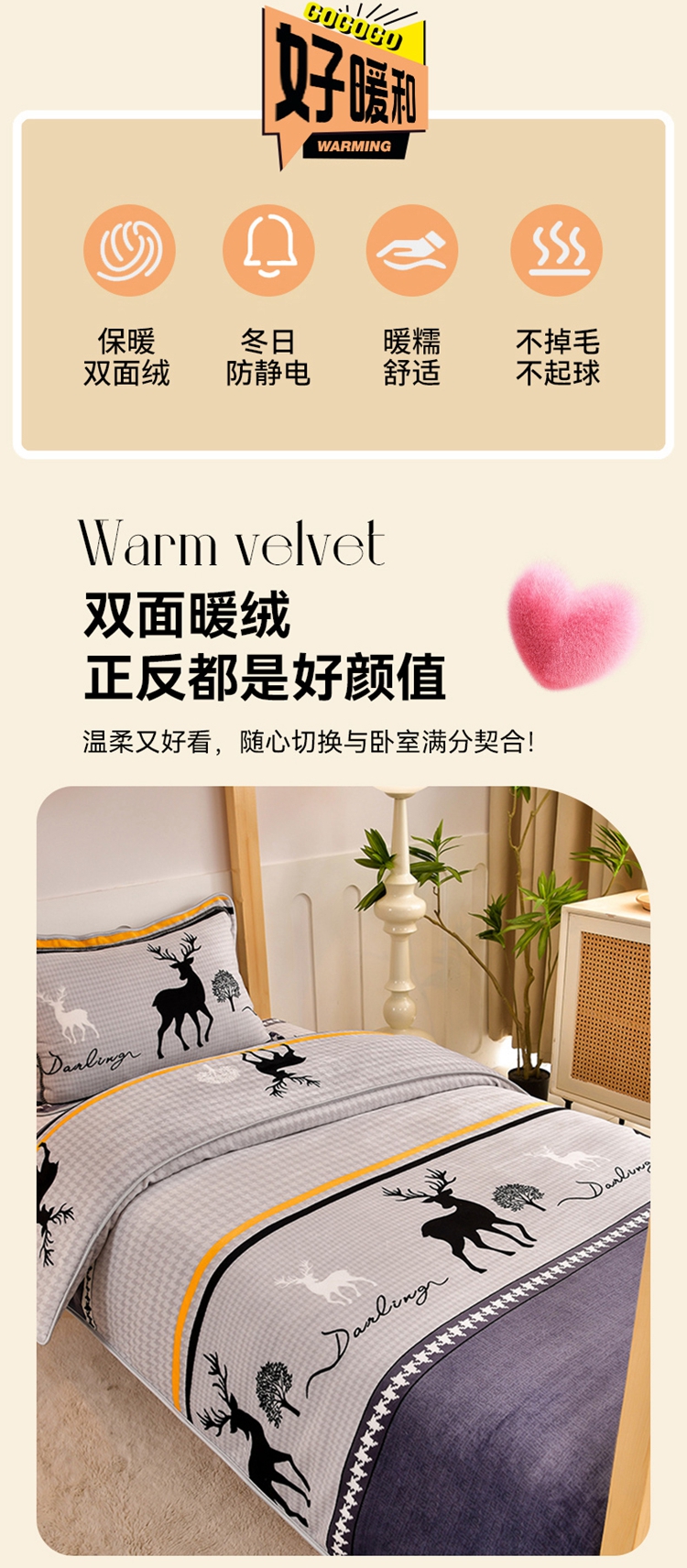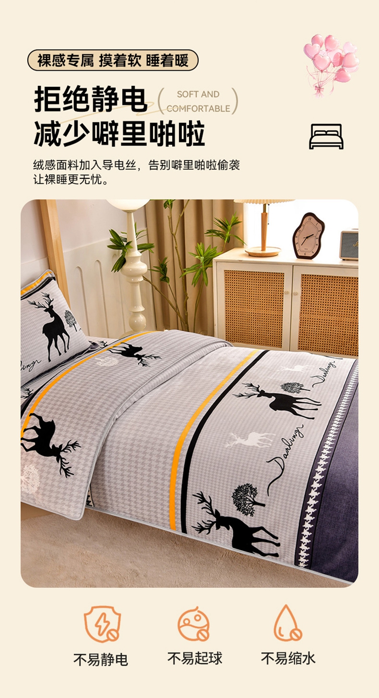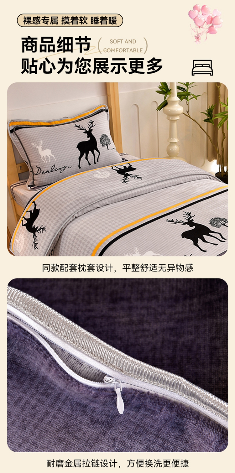 商品名称:馨梦缘2025新款爆款高克重印花牛奶绒法莱绒学生三件套 发财树