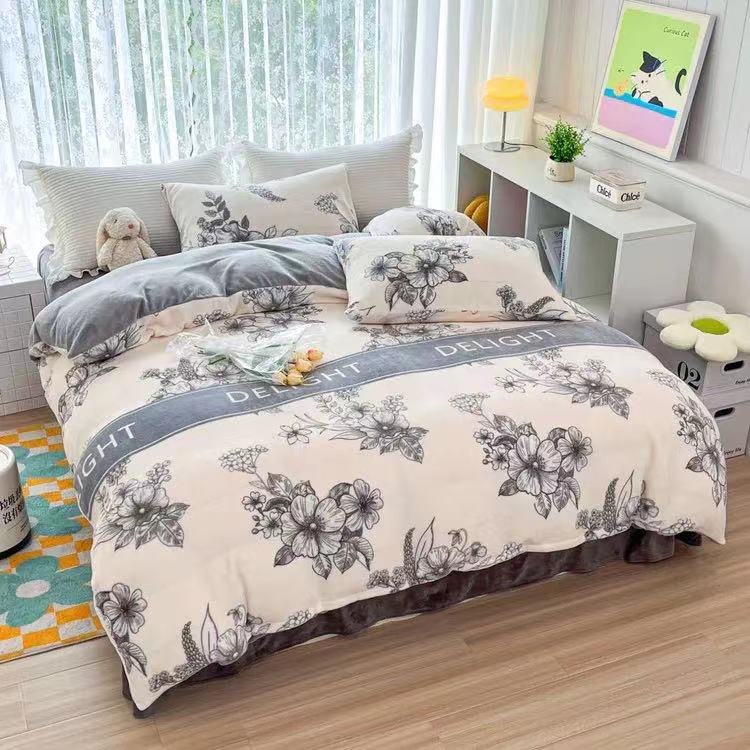 鸿羽樱(鸿羽樱)家纺 2025新款直播热款小清新牛奶绒四件套 爱之多