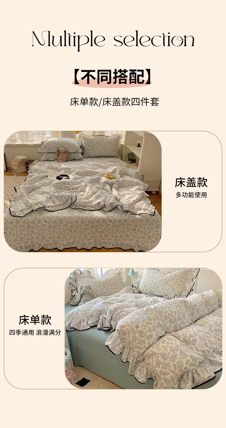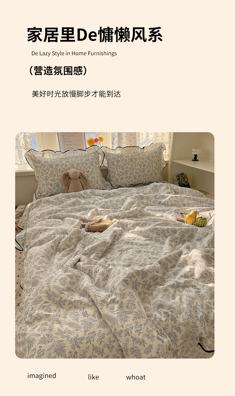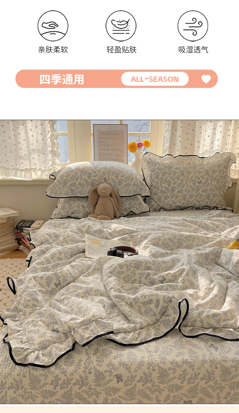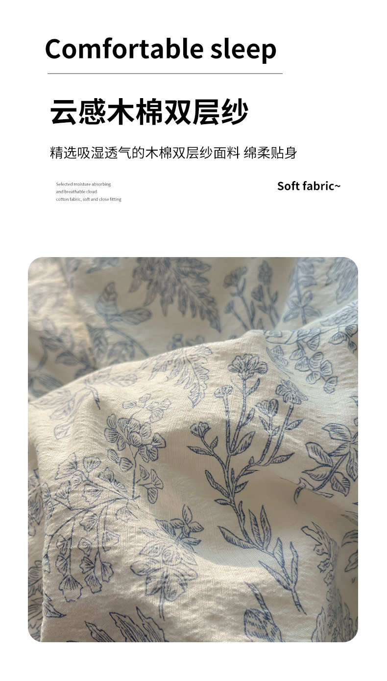 当前位置: 91家纺网 > 商品网购 > 床品套件 > 四件套 > 其它四件套 > 繁花家居 2025新款云感木棉针织棉双层纱床盖四件套 床盖被套款-迷雾森林