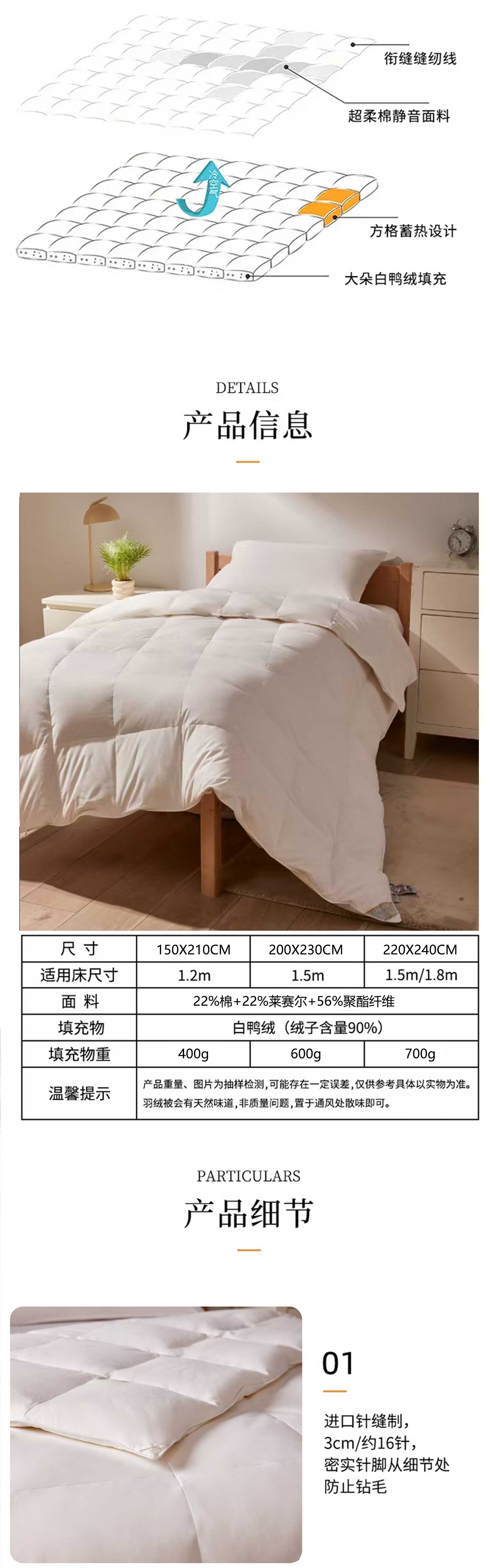• 91家纺网 家纺一手货源 找家纺 圣梦莱羽绒家纺 2025新款学生季羽绒被A类可水洗90鸭绒被可裸睡春秋被四季被地暖被 单人羽绒四季被(白)