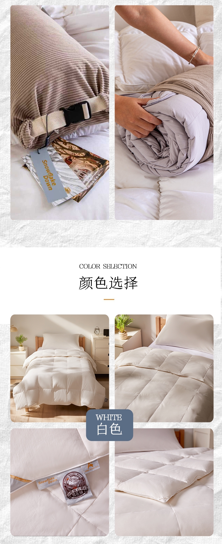 • 91家纺网 家纺一手货源 找家纺 (总)圣梦莱羽绒家纺 2025款新品跨境出海外贸专供羽绒被(订单)可定制填充重量(gsm),粉色,深灰色,咖啡色,白色