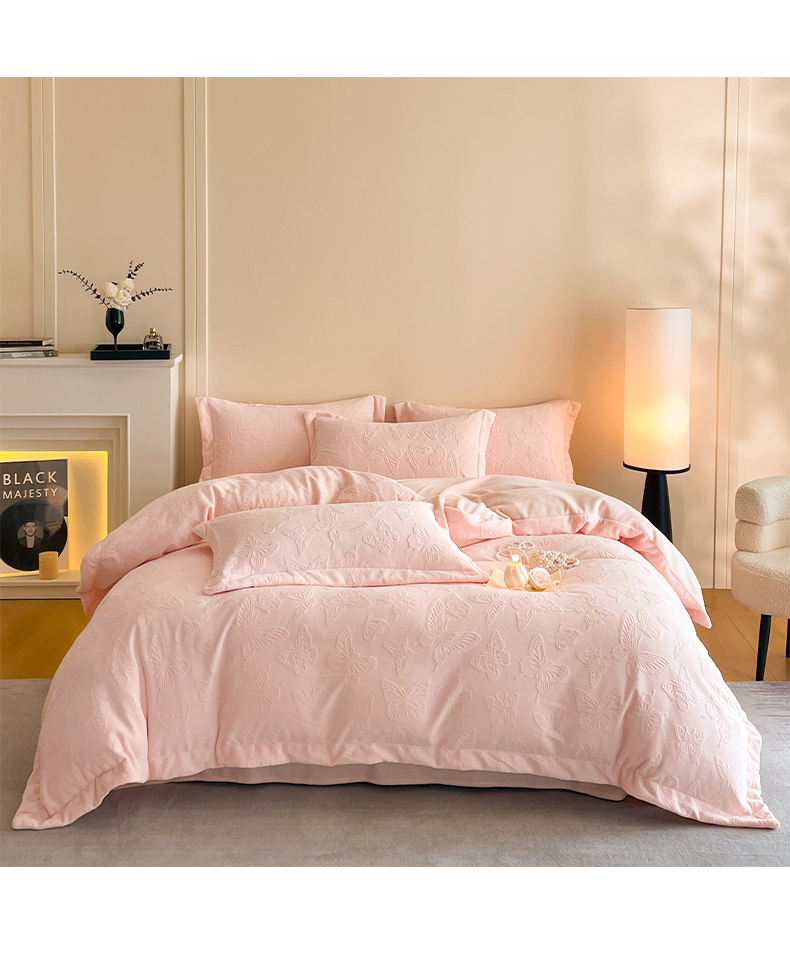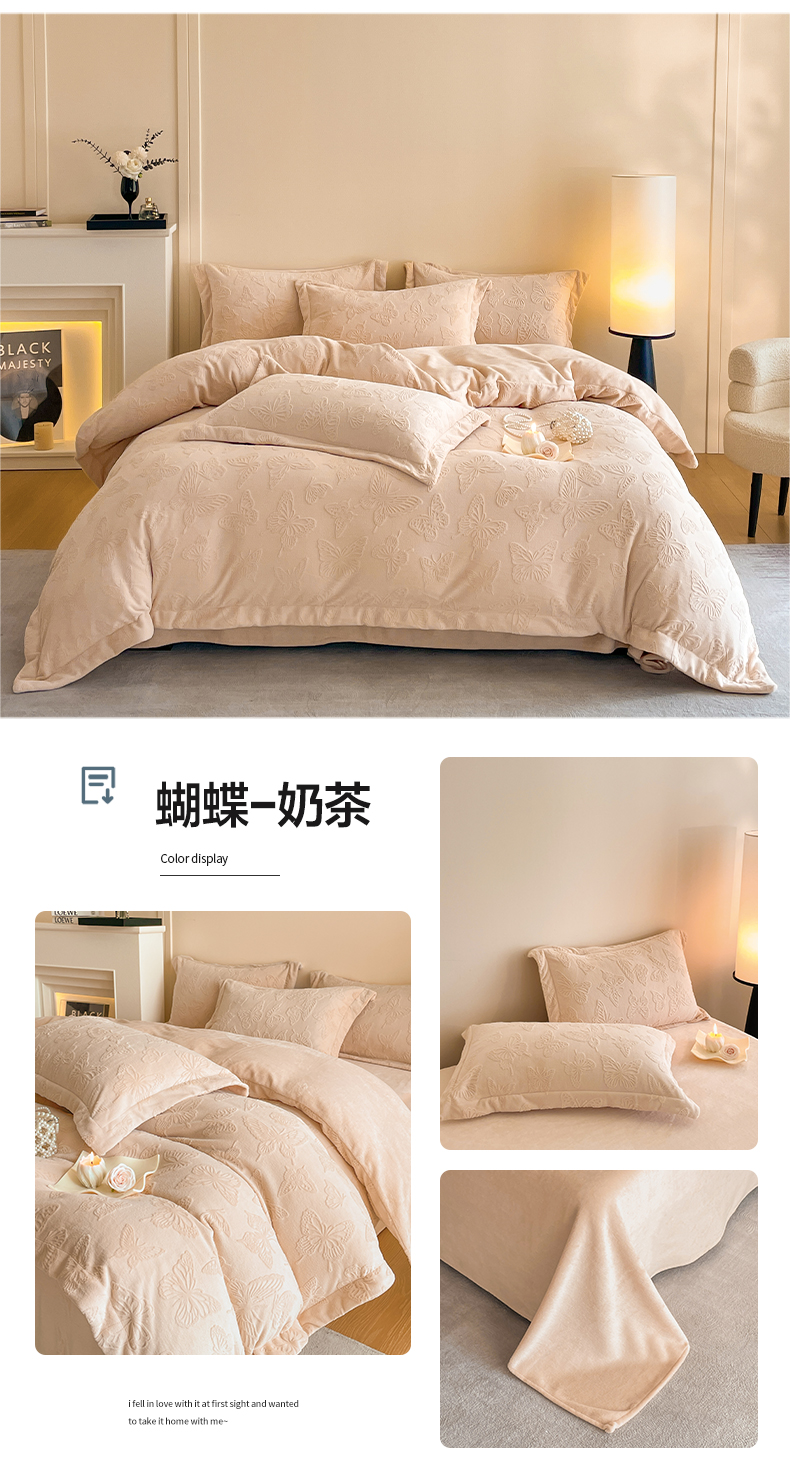 当前位置: 91家纺网 > 商品网购 > 床品套件 > 四件套 > 牛奶绒四件套 > 米彩家纺 2025新款A类牛奶绒立体雕花烂花宽边四件套 蝴蝶紫灰