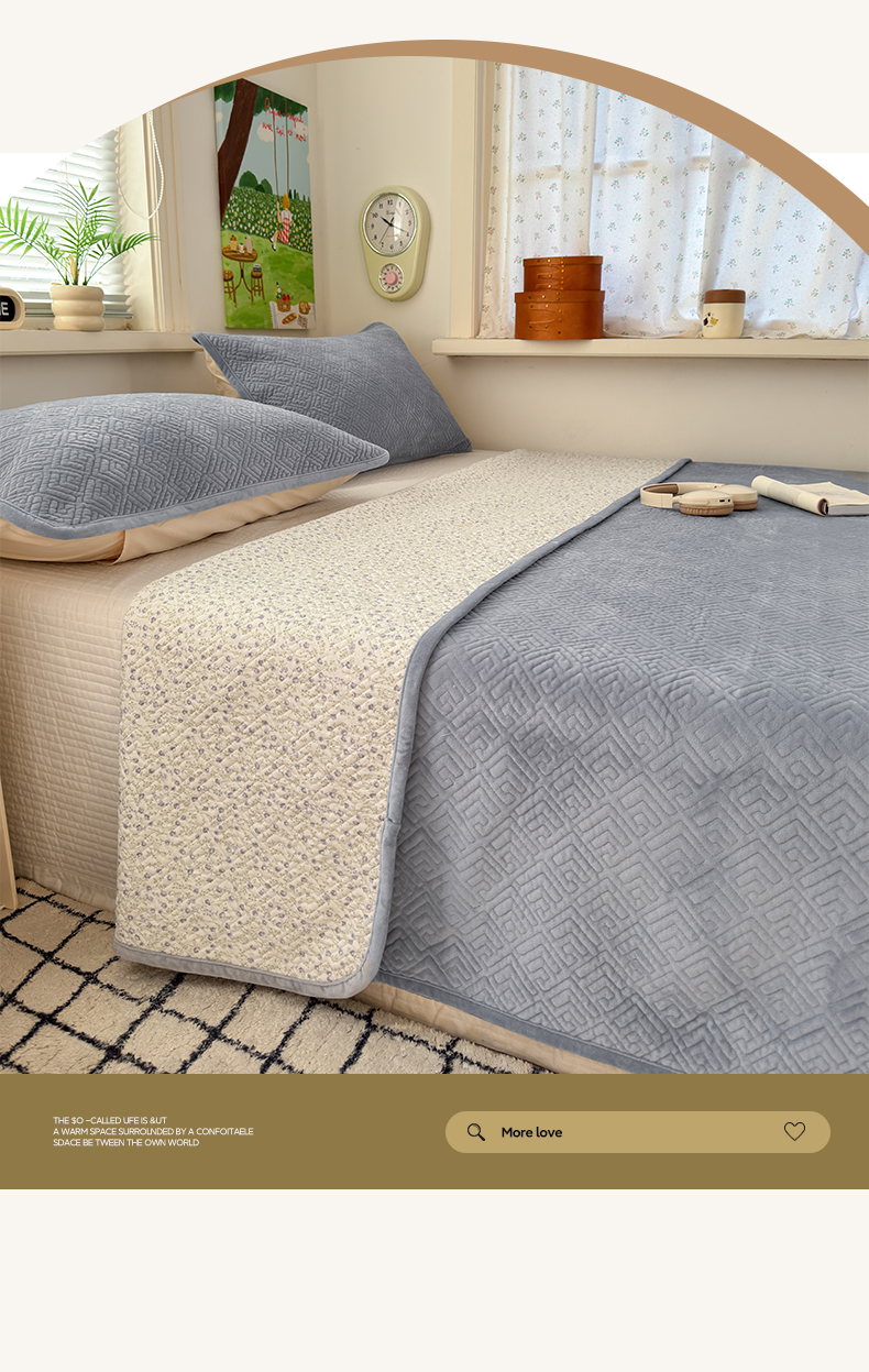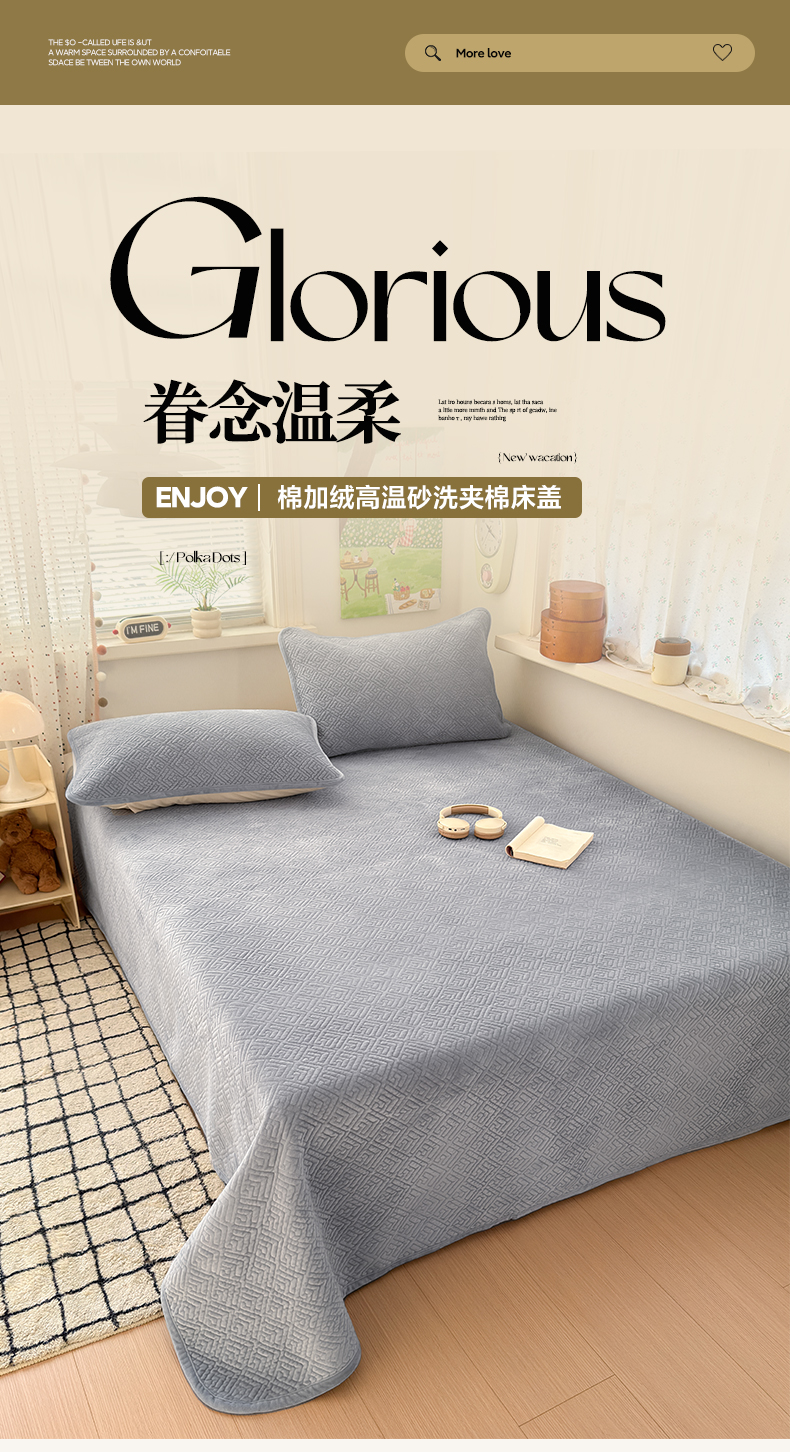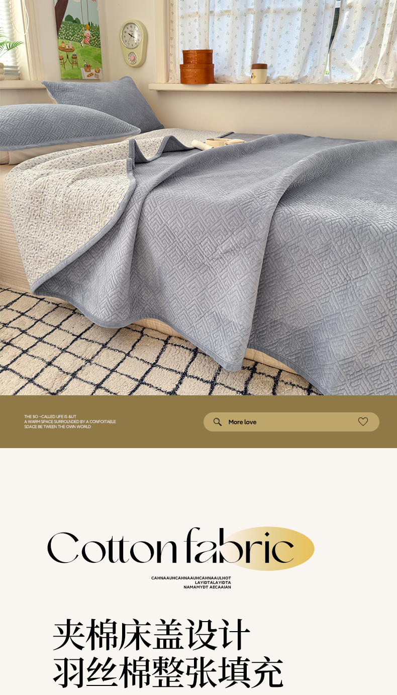 • 91家纺网 家纺一手货源 找家纺 美优兰 2025新款棉加绒高温砂洗夹棉单床盖 床盖单件 暖阳-灰色