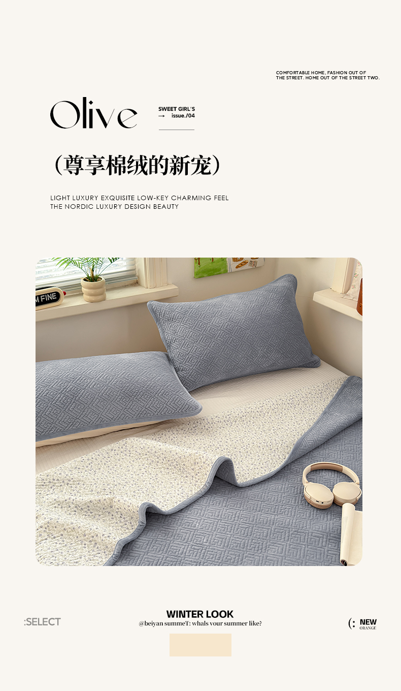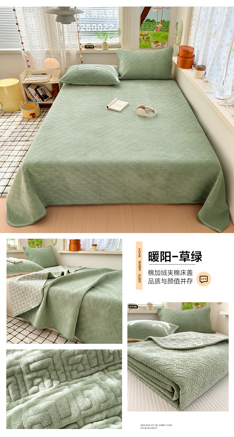 (总)美优兰 2025新款棉加绒高温砂洗夹棉单床盖 床盖单件,组合图仅供展示不可下单,暖阳-草绿,暖阳-豆绿,暖阳-粉黛,暖阳-灰色,暖阳-蓝色,暖阳-米黄,暖阳-米驼,暖阳-紫薯