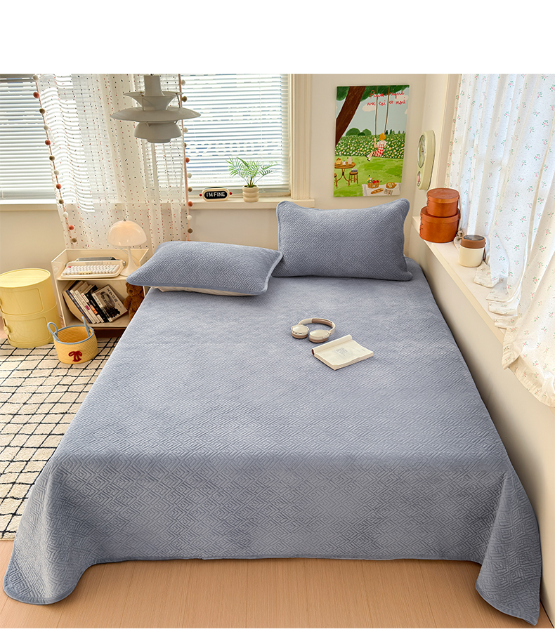 美优兰 2025新款棉加绒高温砂洗夹棉单床盖 床盖单件 暖阳-灰色