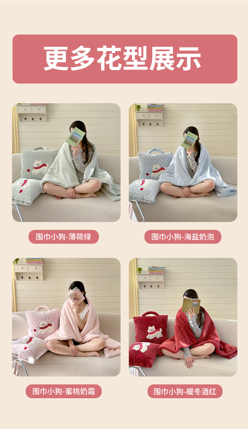 (总)多米家居 2025新款抱枕被-围巾小狗系列,围巾小狗-蜜桃奶霜,围巾小狗-薄荷绿,围巾小狗-海盐奶泡,围巾小狗-暖冬酒红,组合图仅供展示不可下单