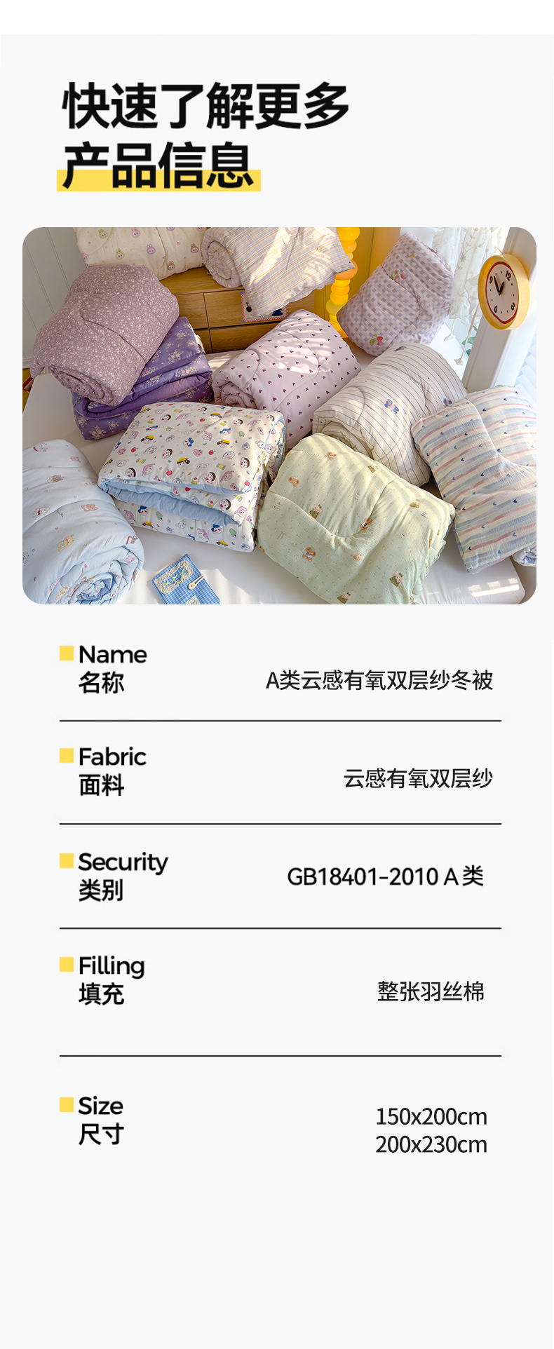 (总)弗苓家纺 2025新款A类云感有氧双层纱冬被被子被芯,白茶蓝,草莓格,春风里,呆萌西高地,豆蔻,格子奶咖,花园兔,拉布布,绿象泡泡,米奇,米亚,苹果栖时,绒绒乐园,舒芙蕾,疏影之星,条纹小象,小新,枕梦星月,紫爱心,紫苏,组合图仅供展示不可下单