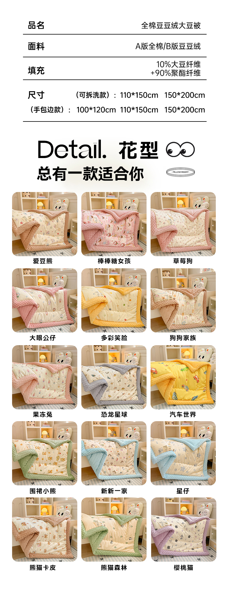(总)梦依依 2025新款全棉豆豆绒大豆被冬被春秋被儿童豆豆被(风格一),棒棒糖女孩,安藤丽娜(咖),草帽兔,草莓狗,草莓园,潮汐月影,春风里-紫,春日礼盒,多彩笑脸,粉粉兔,狗狗家族,果冻兔,蝴蝶结灰,花季时光,花森密语(粉),恐龙星球,蓝香清韵,萝莉兔,沐光(米),趴趴乐园,轻纱漫舞,秋日玫瑰,瑞莎-蓝,守护爱心,听风-灰,童年游戏(米),涂鸦乐园,五彩蝶,夏日恋格-兰,小呆熊,小黑点点-米,星仔,熊猫卡皮,熊猫森林,熊仔,萱花,樱桃猫,月光集,月蓉花,云深白茶,樱桃树