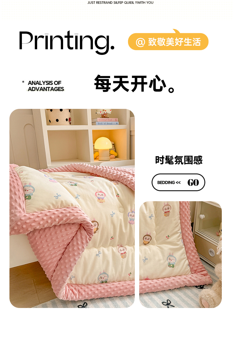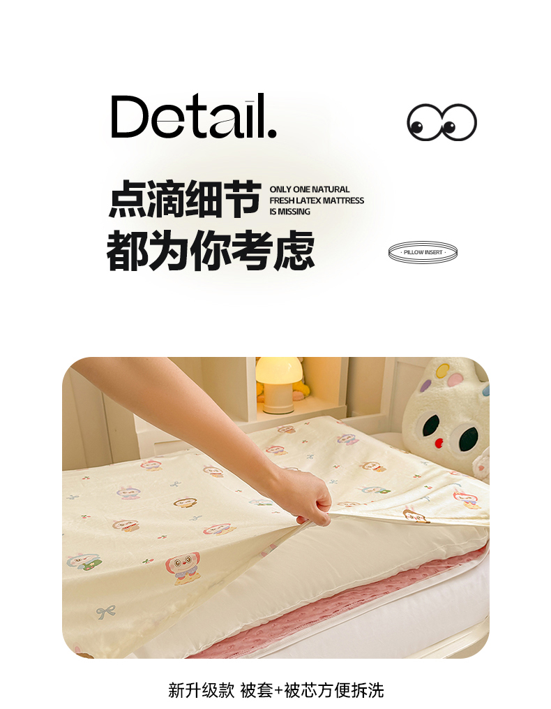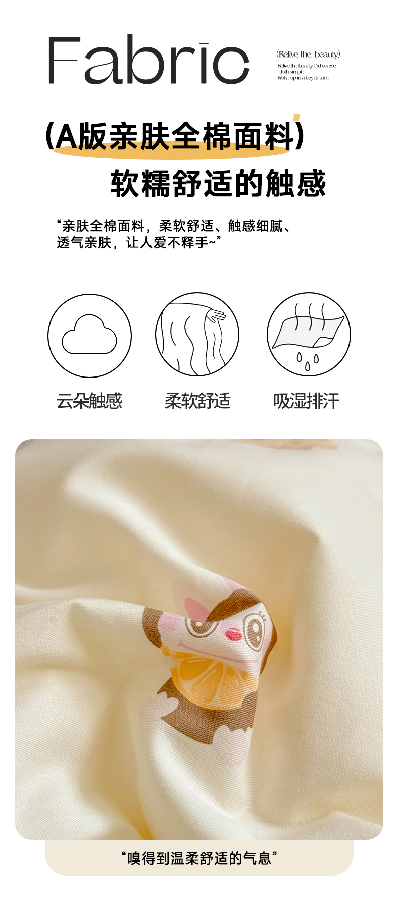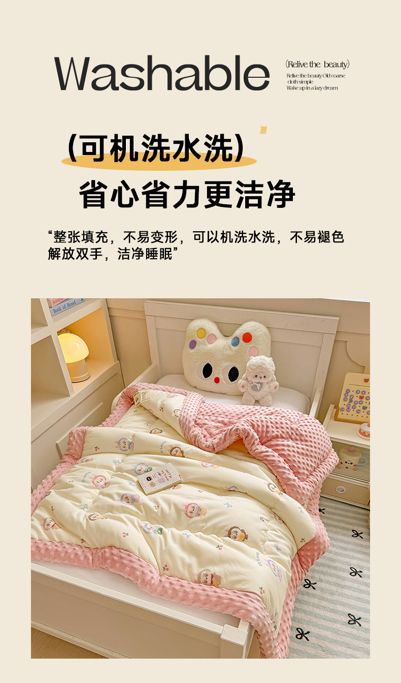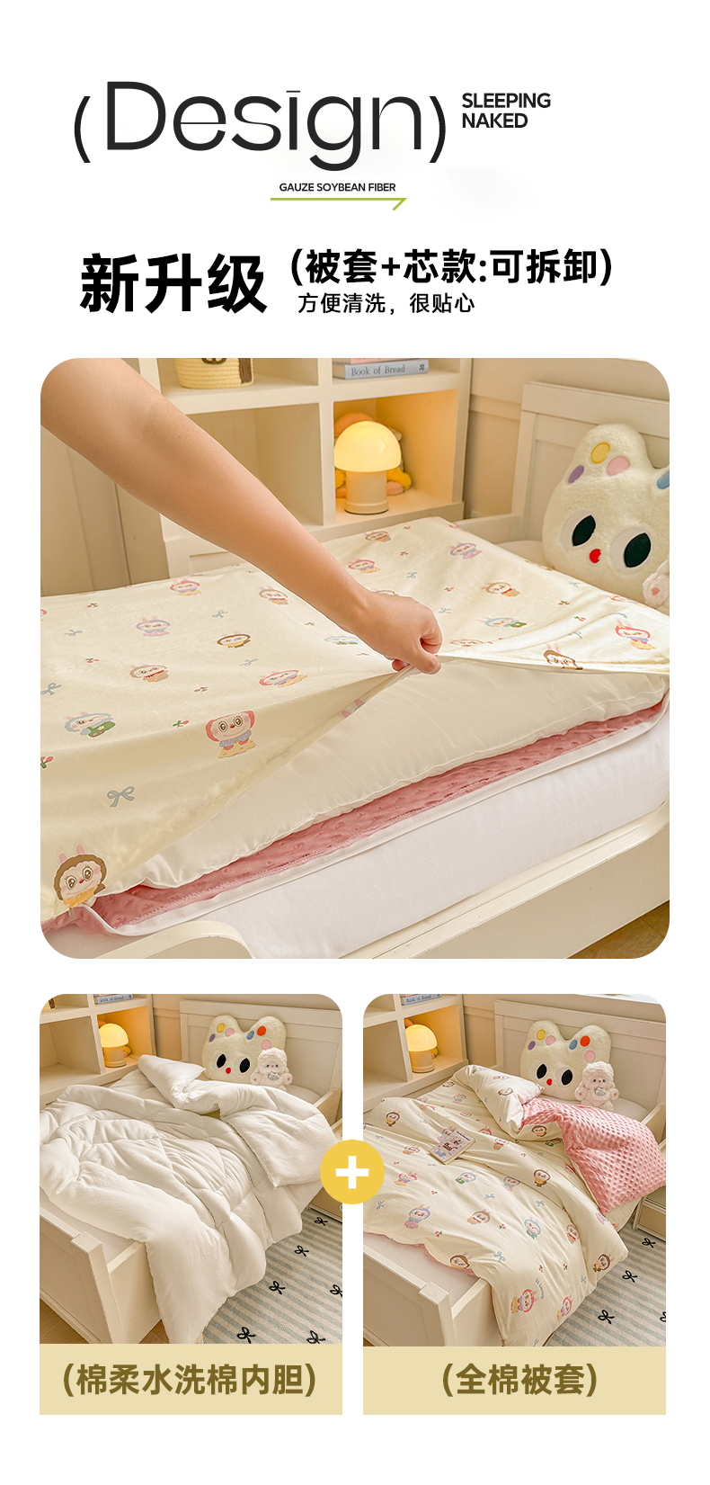 • 91家纺网 家纺一手货源 找家纺 梦依依 2025新款全棉小清新卡通印花系列儿童豆豆被子被芯 可拆卸款-大眼公仔