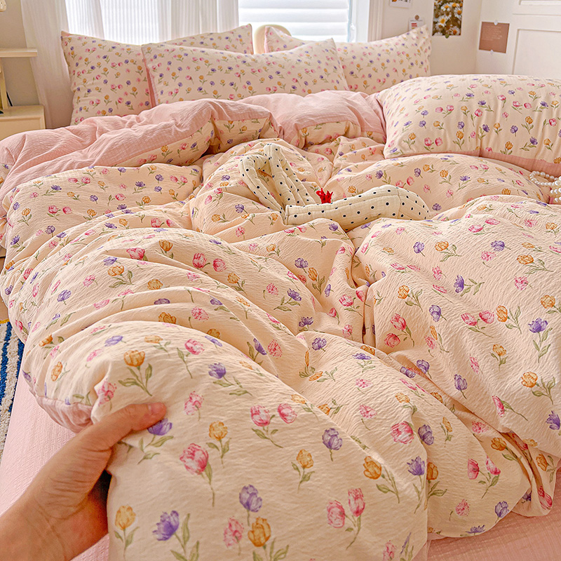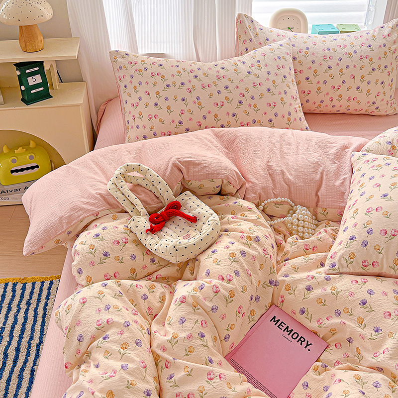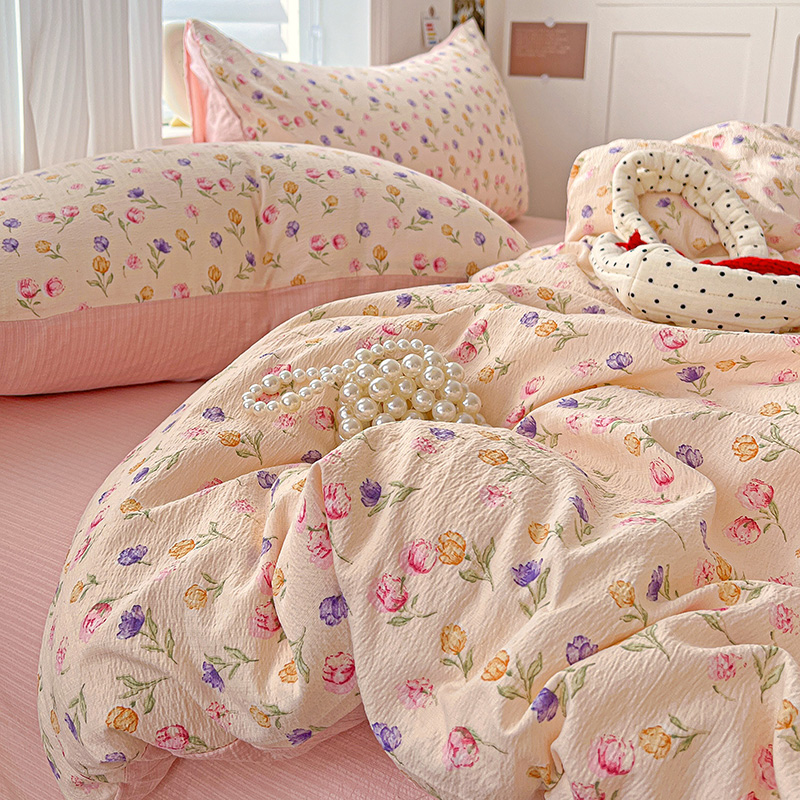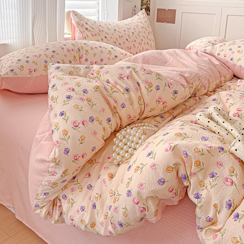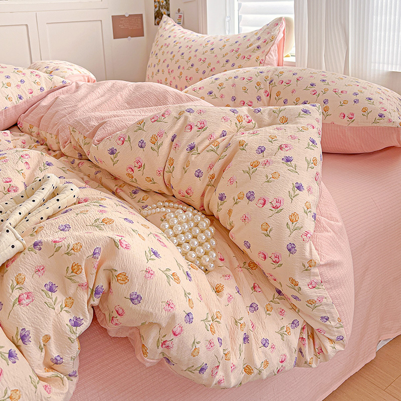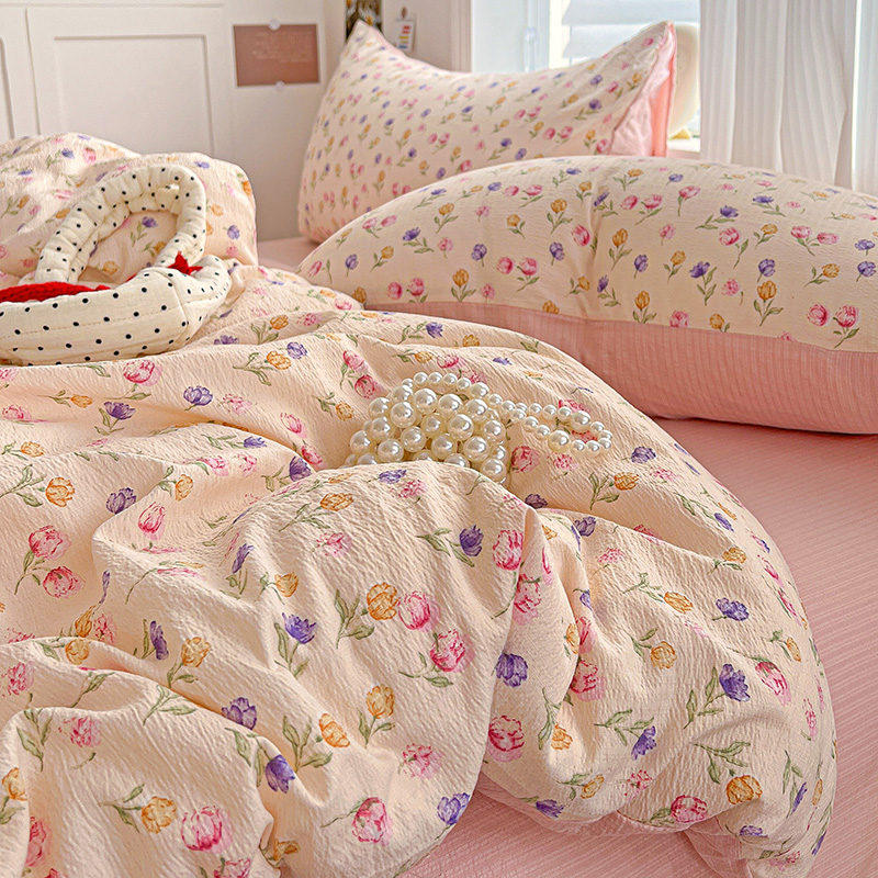 一比一 2026新款云感皱皱双层纱四件套-简单款 花予