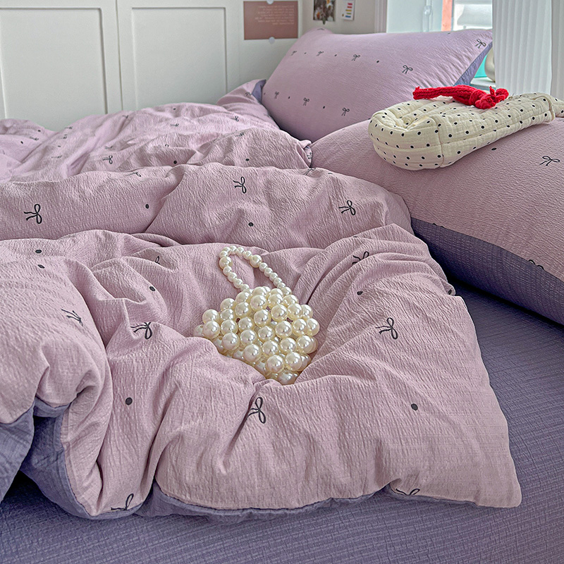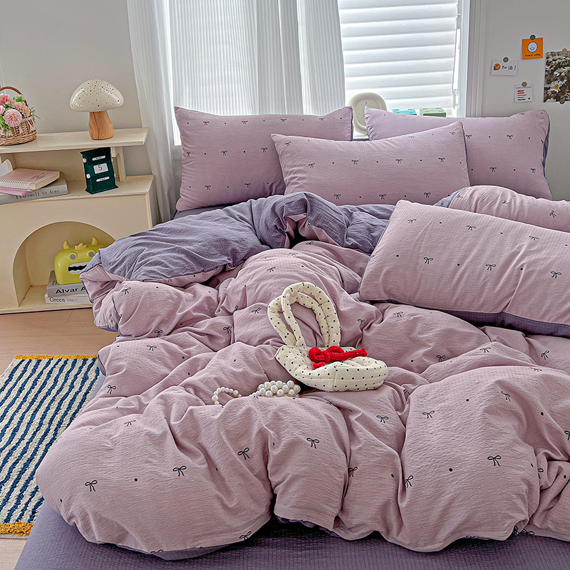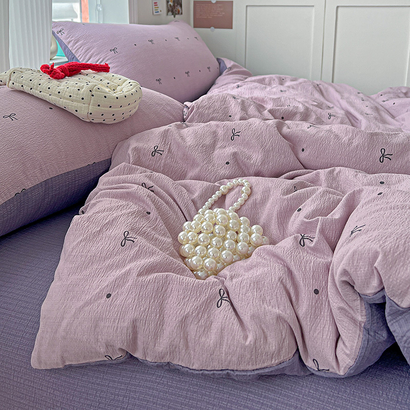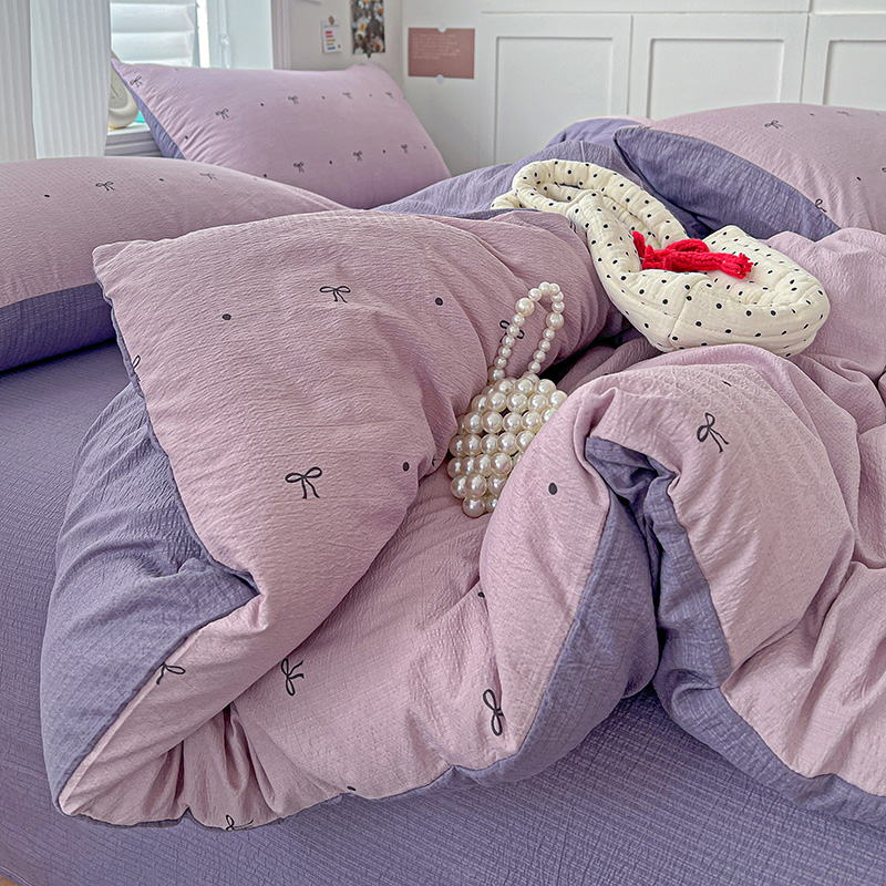 一比一 2026新款云感皱皱双层纱四件套-简单款 心意紫