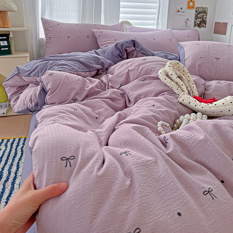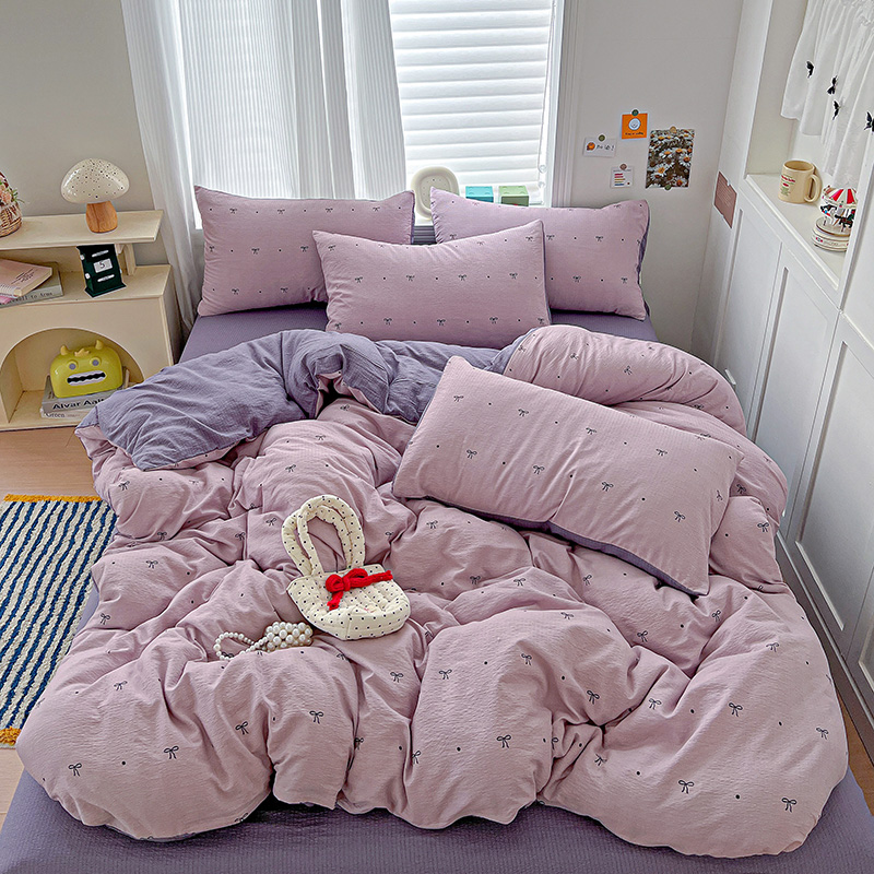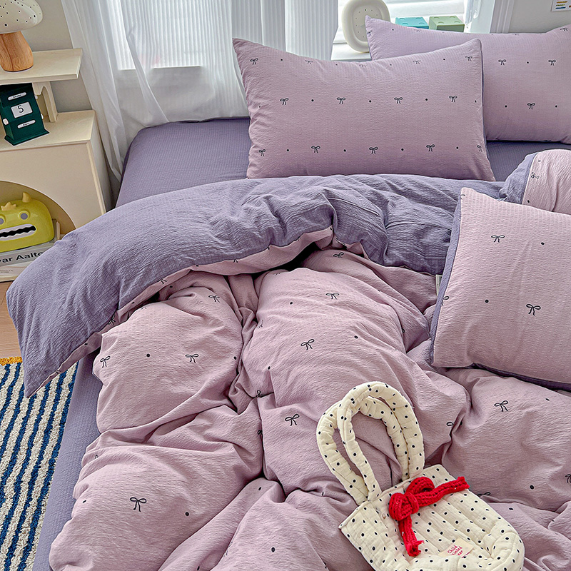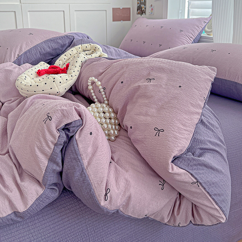 商品名称:一比一 2026新款云感皱皱双层纱四件套-简单款 心意紫