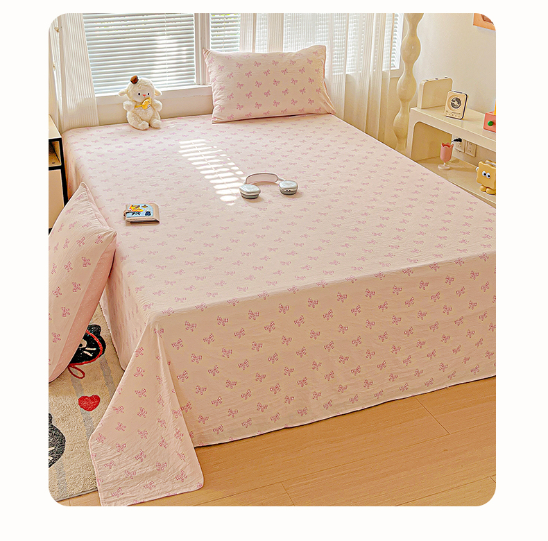 • 91家纺网 家纺一手货源 找家纺 格真 2025新款A类云感木棉皱皱双层纱床单单床单床单单品床单三件套 波点-巧克力棕