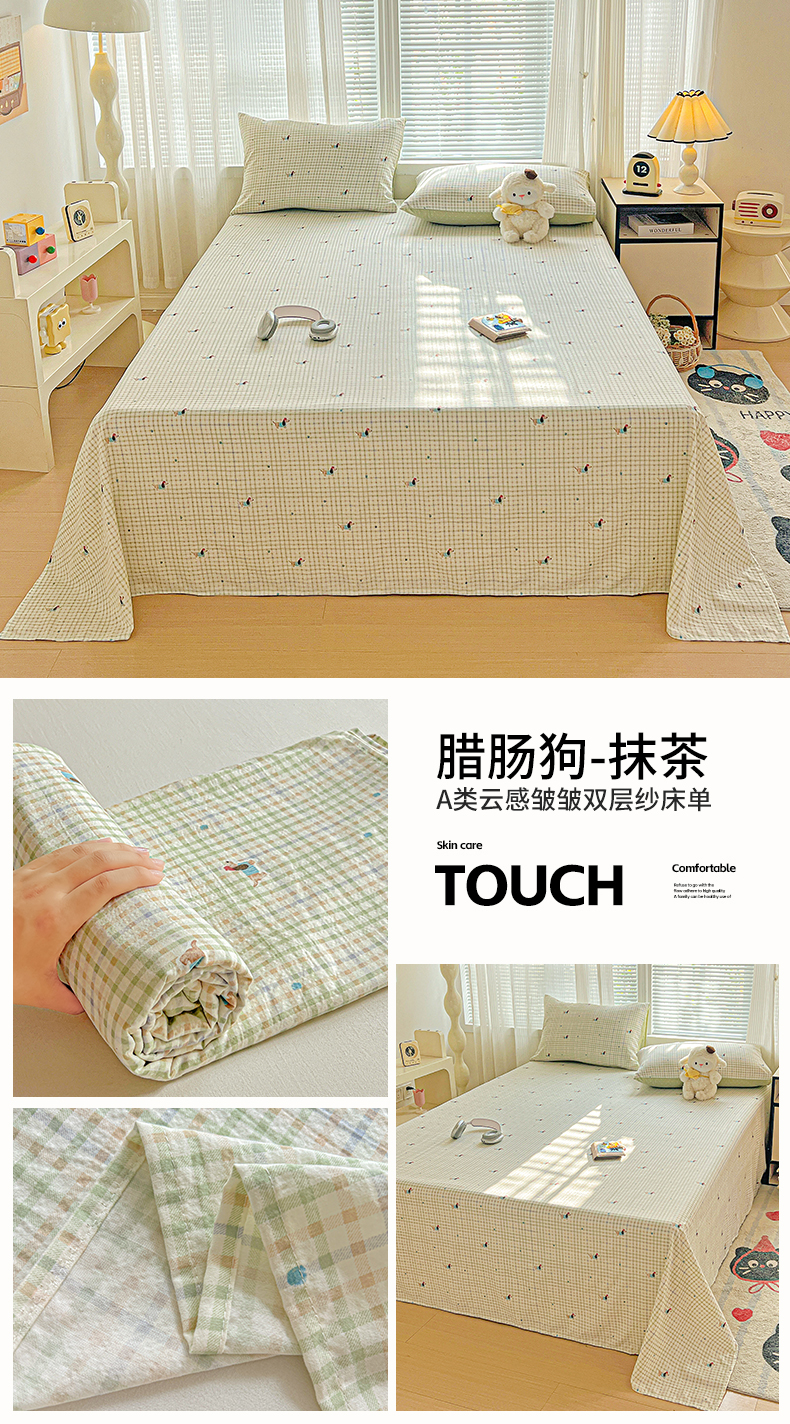 当前位置: 91家纺网 > 商品网购 > 床上用品 > 床单 > 格真 2025新款A类云感木棉皱皱双层纱床单单床单床单单品床单三件套 波点-巧克力棕