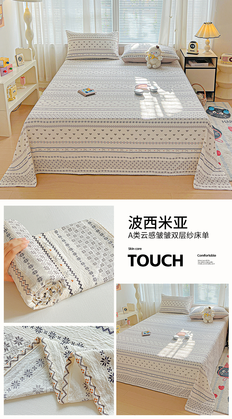 格真 2025新款A类云感木棉皱皱双层纱床单单床单床单单品床单三件套 西高地