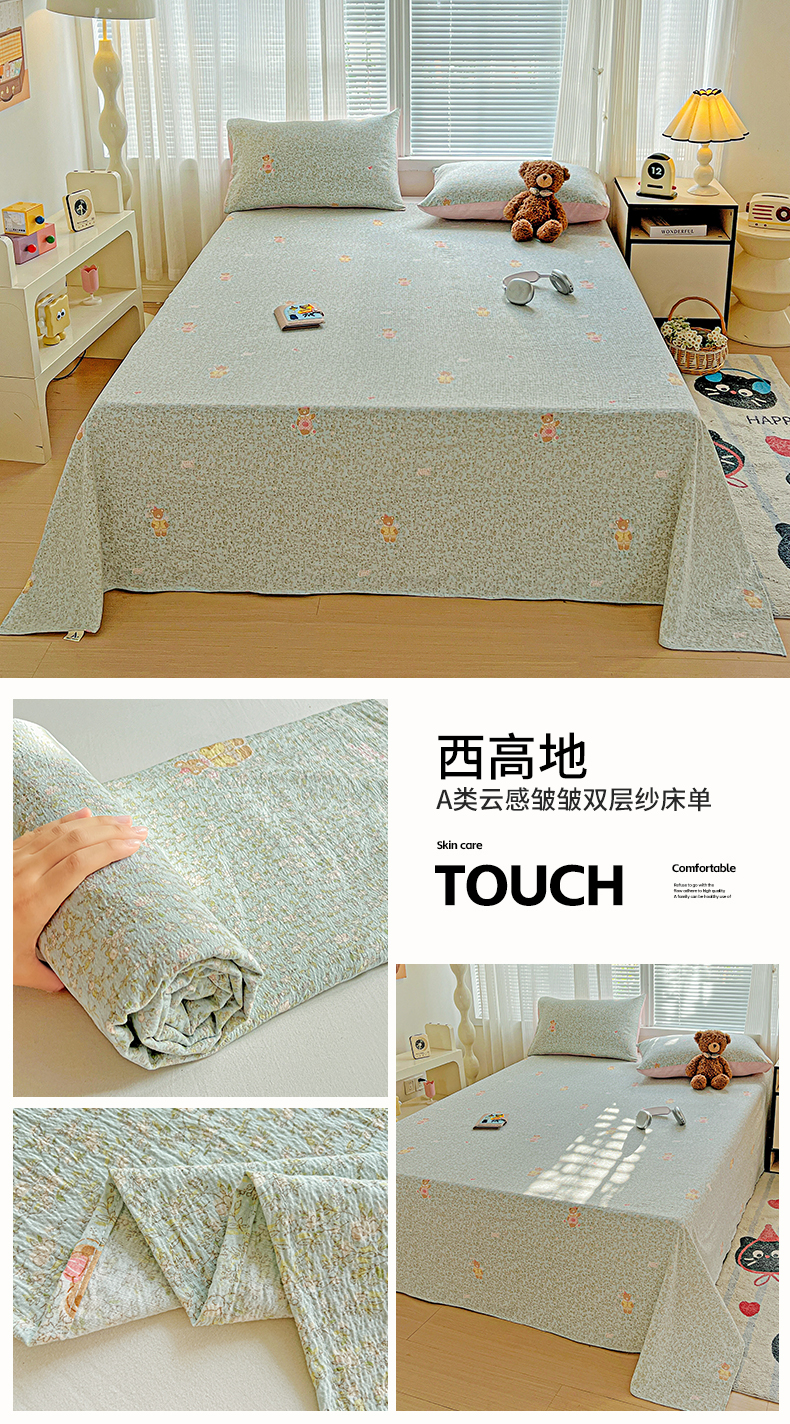 • 91家纺网 家纺一手货源 找家纺 格真 2025新款A类云感木棉皱皱双层纱床单单床单床单单品床单三件套 西高地
