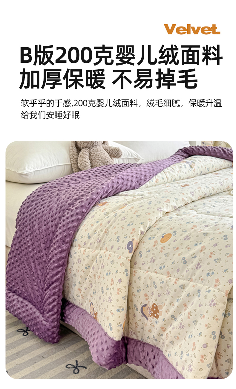 总 宜梦家居【需要买家秀请联系老板】 2025新款A类纯棉婴儿绒豆豆被四季夏凉春秋被子冬被芯,青春绽放,幸运兔,法式玫瑰,复古琉璃,好多鱼,郁金香-紫,月满西楼