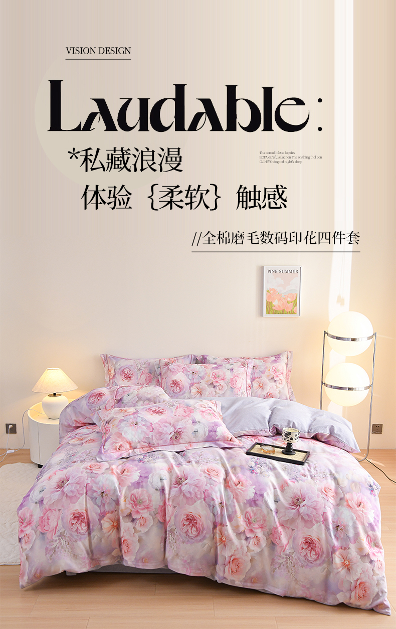 铭浩 2025新款全棉纯棉数码印花四件套 盛夏-紫