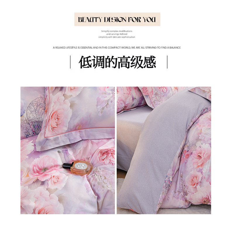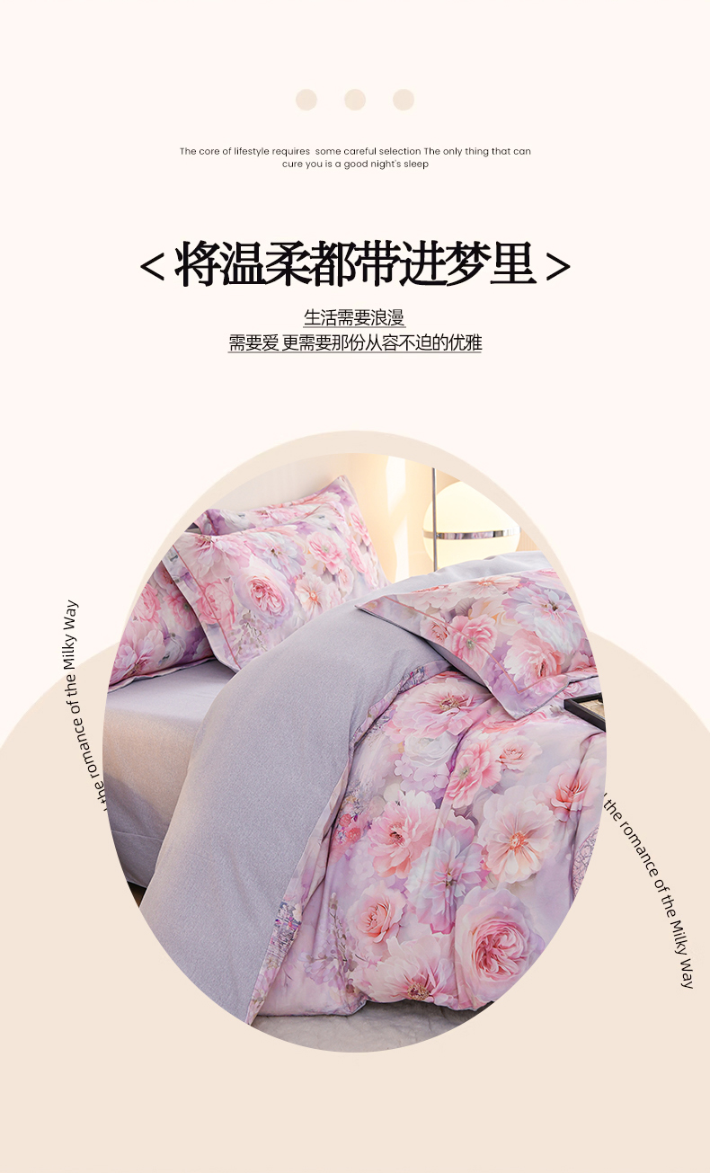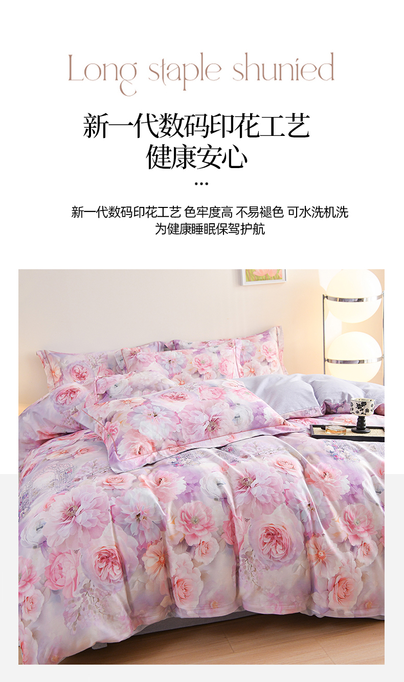 商品名称:铭浩 2025新款全棉纯棉数码印花四件套 盛夏-紫