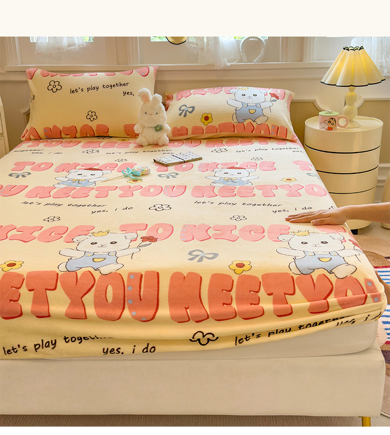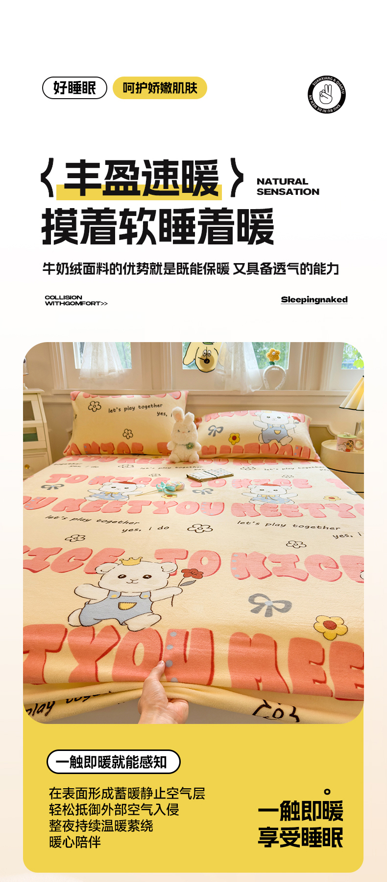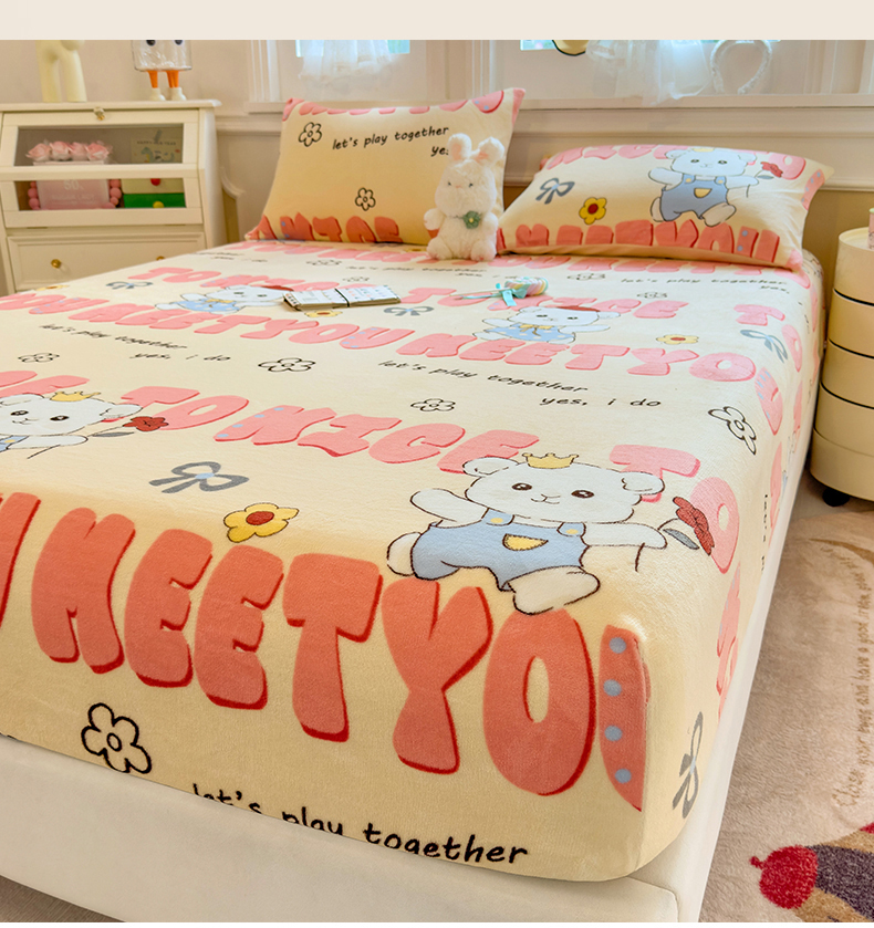 (总)摩妮卡 2025新款加厚保暖牛奶绒夹棉绣花床垫三件套,呆呆熊-蓝,呆呆熊-黄,呆呆熊-咖,Kitty猫-白,Kitty猫-粉,Kitty猫-紫