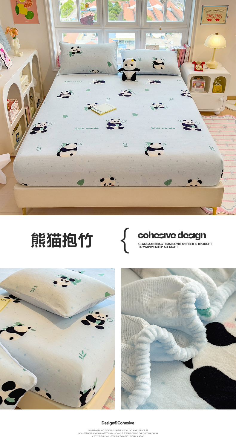 • 91家纺网 家纺一手货源 找家纺 摩妮卡 2025新款印花系列小清新牛奶绒印花床笠三件套 修狗