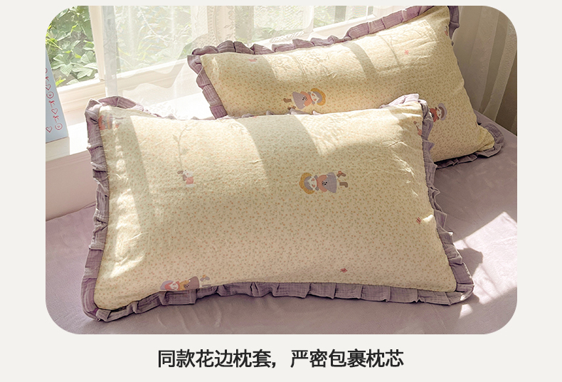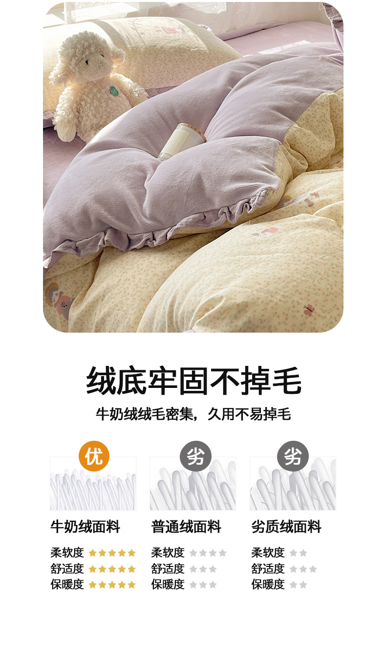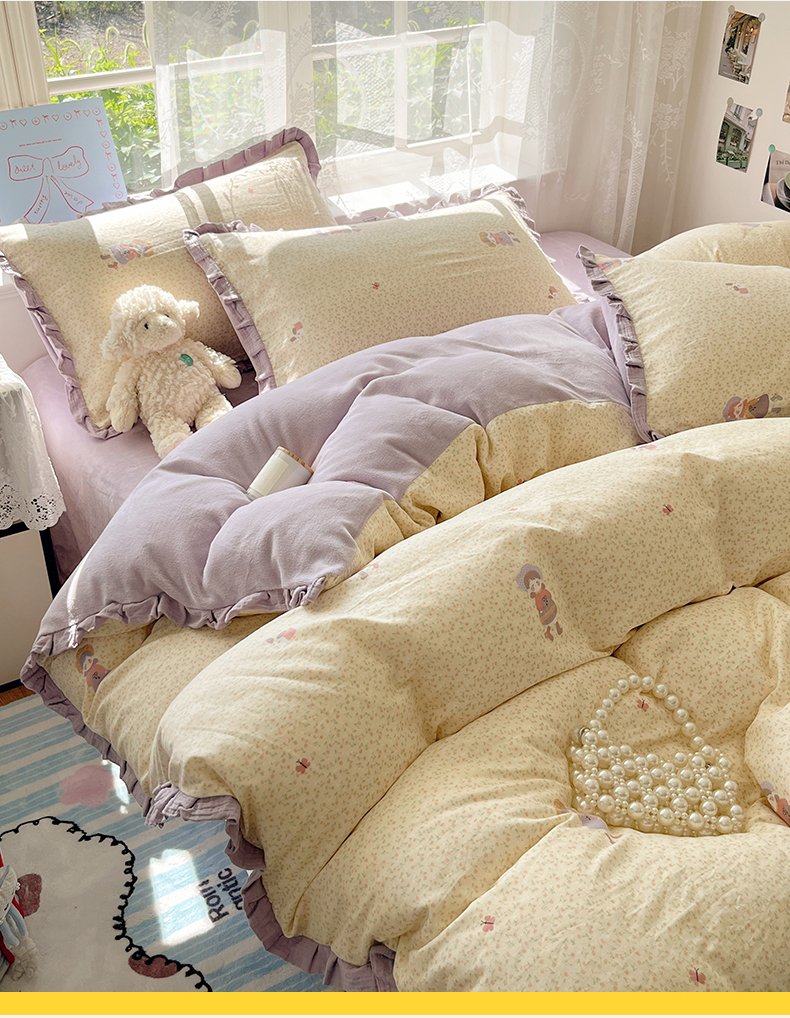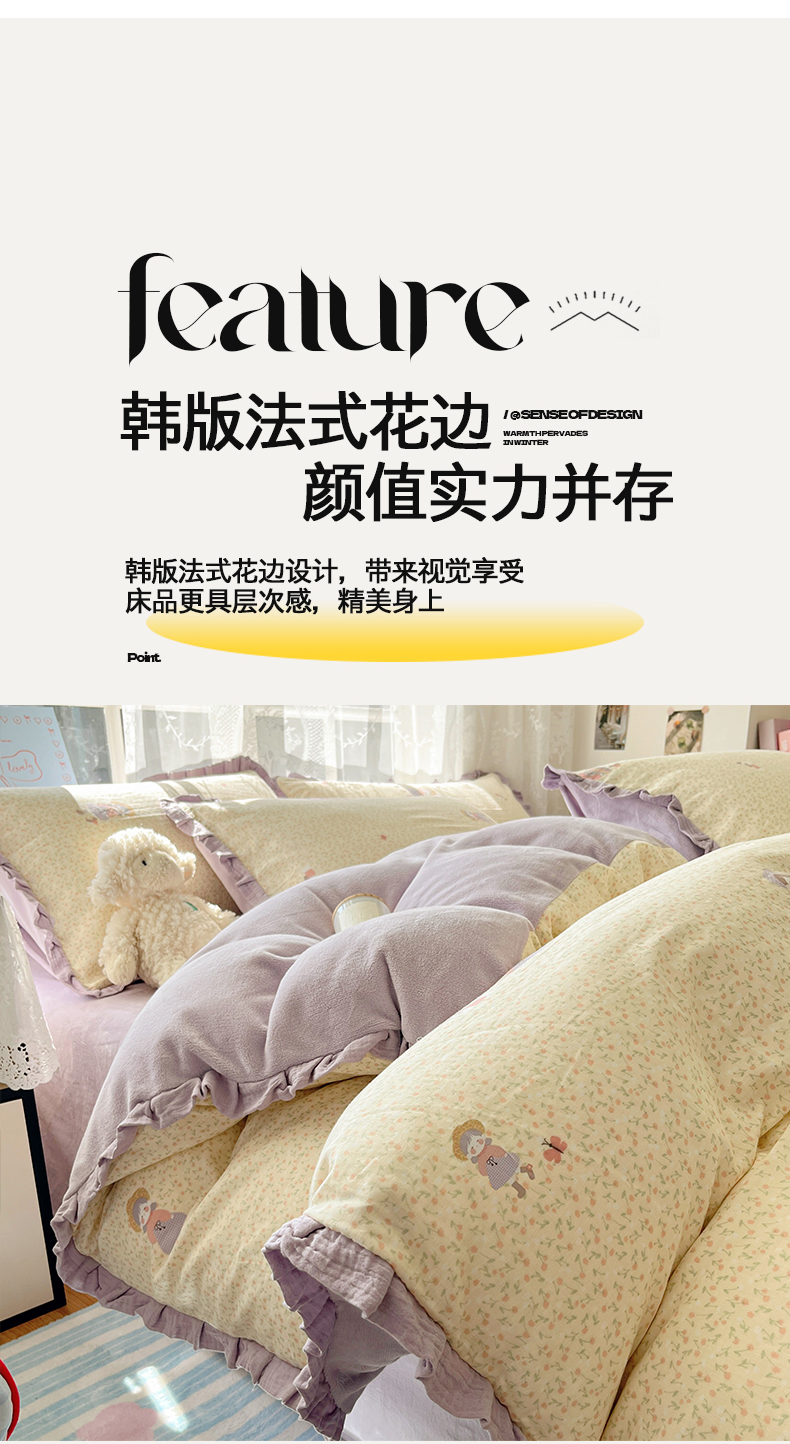 商品名称:桃子家居 2025新款A类韩版花边皱皱纱纯棉有氧双层纱加全消光加厚牛奶绒高品质棉加绒暖纱绒四件套 暖纱绒-蝴蝶女孩