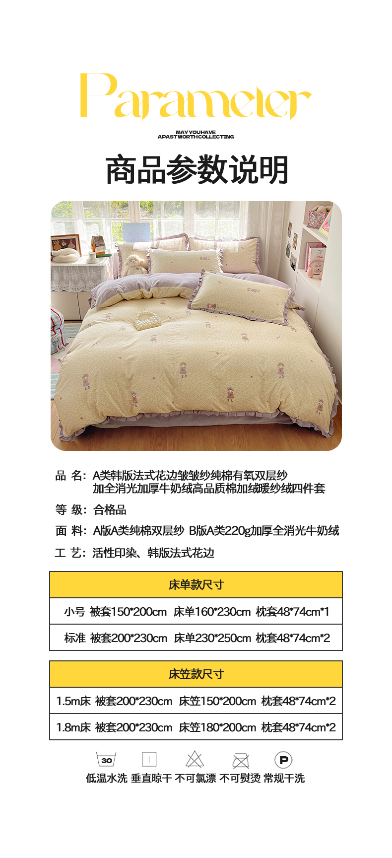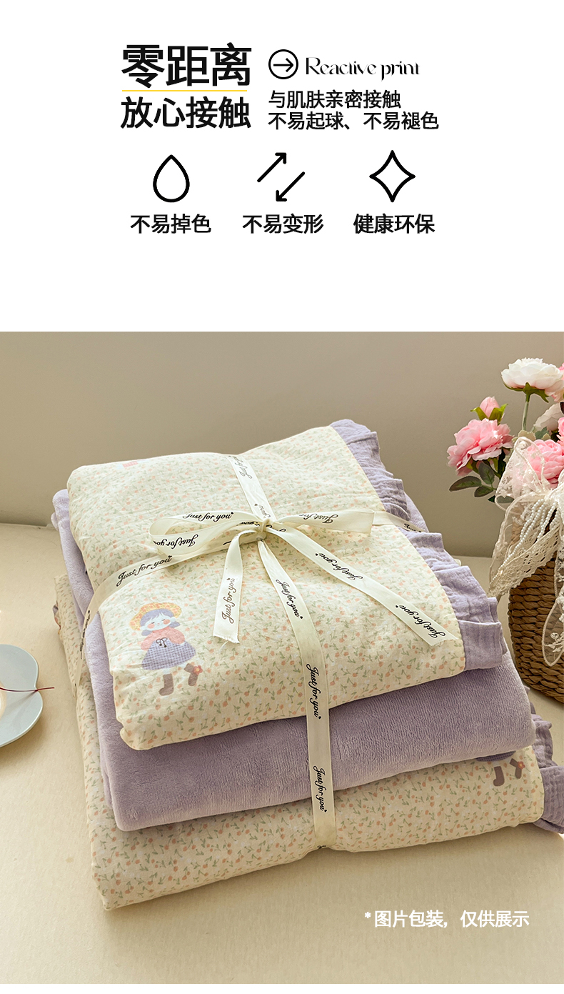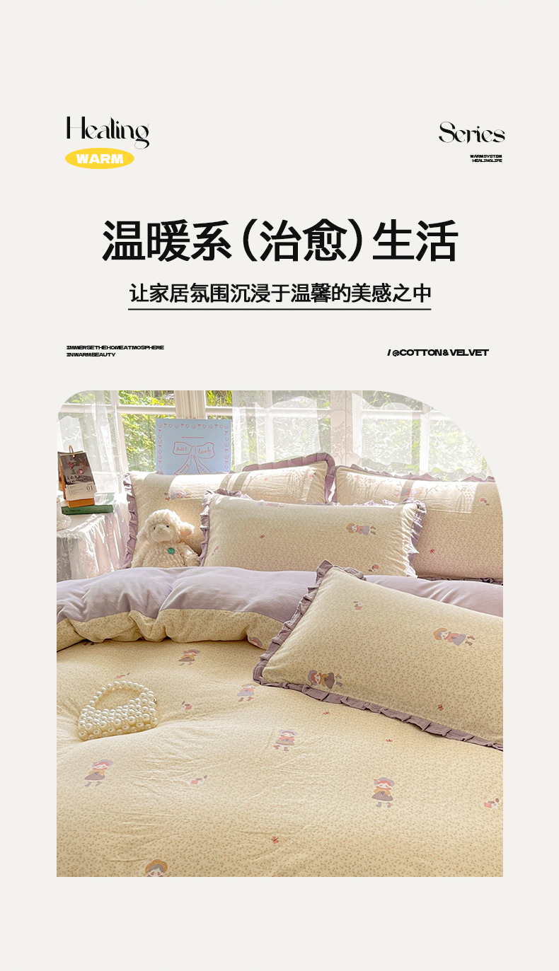 商品名称:桃子家居 2025新款A类韩版花边皱皱纱纯棉有氧双层纱加全消光加厚牛奶绒高品质棉加绒暖纱绒四件套 暖纱绒-蝴蝶女孩