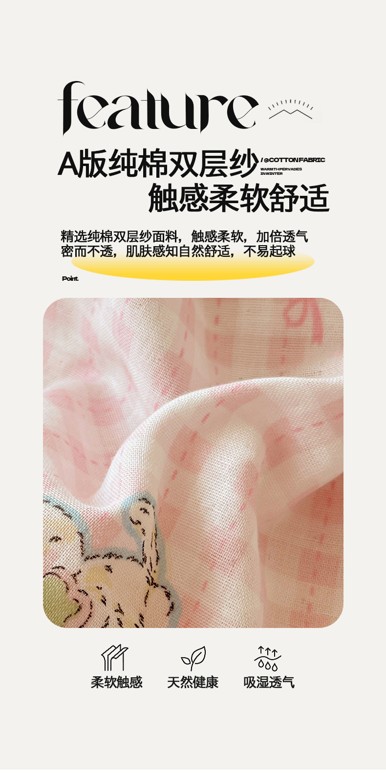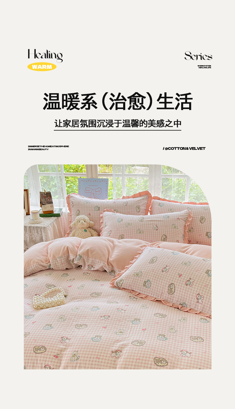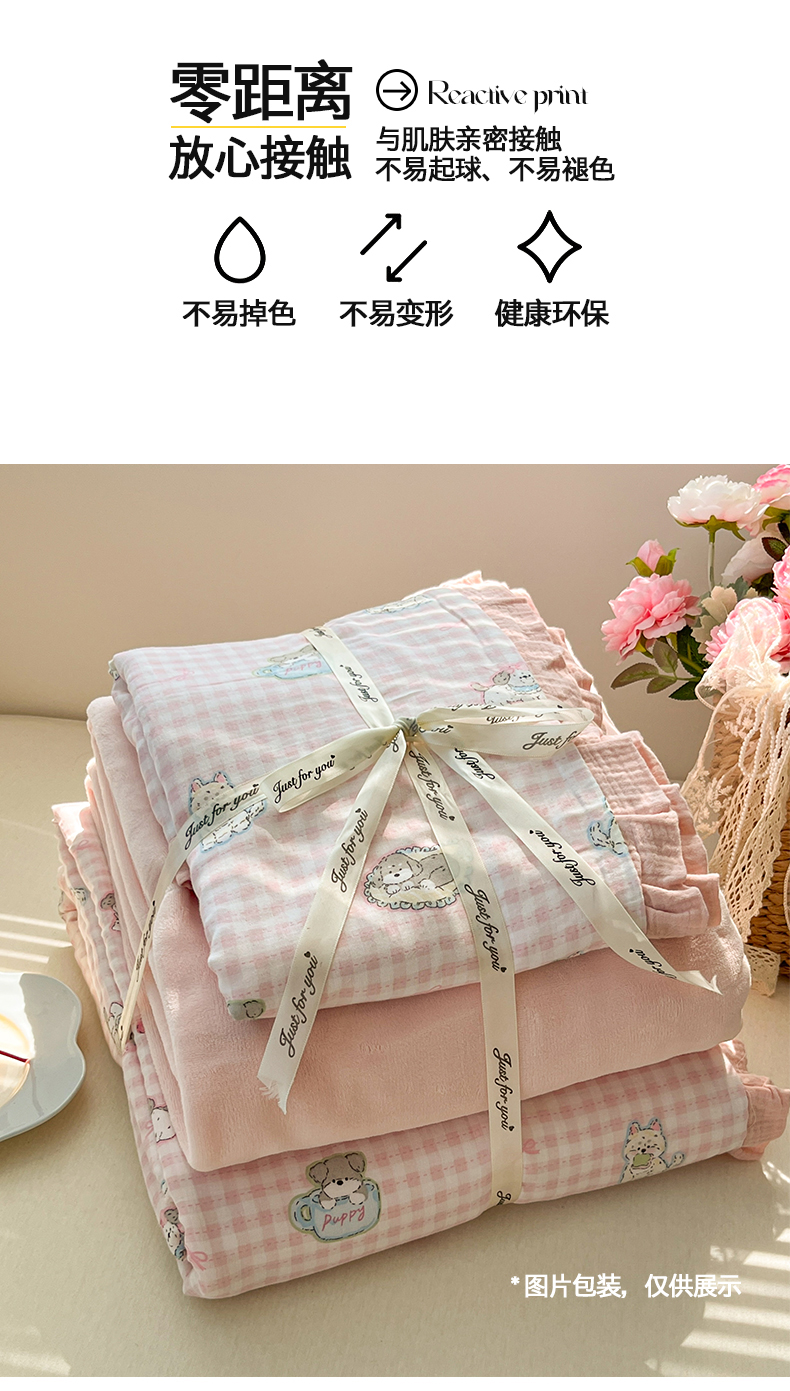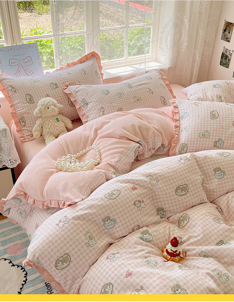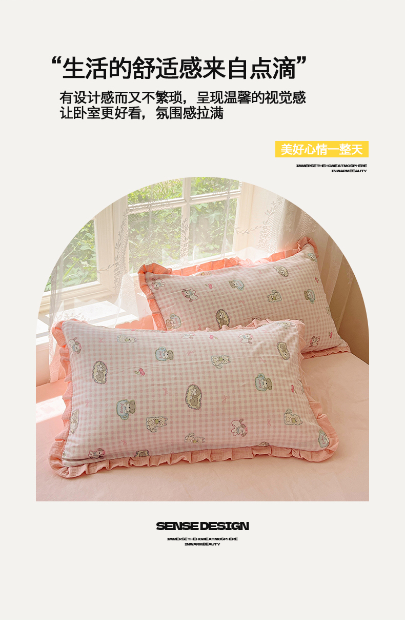 商品名称:桃子家居 2025新款A类韩版花边皱皱纱纯棉有氧双层纱加全消光加厚牛奶绒高品质棉加绒暖纱绒四件套 暖纱绒-小甜心