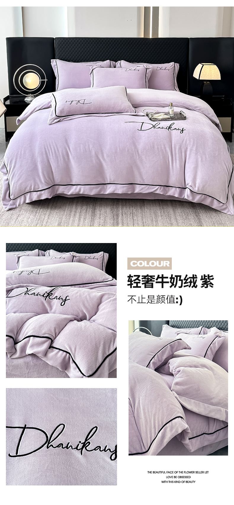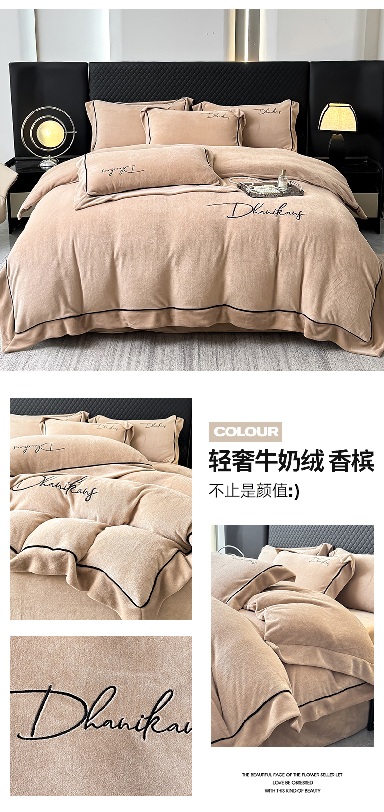 (总)KA家纺 2025新款冬季设计师款牛奶绒刺绣四件套沐言系列,沐言白+卡其,沐言白+蓝,沐言粉,沐言蓝