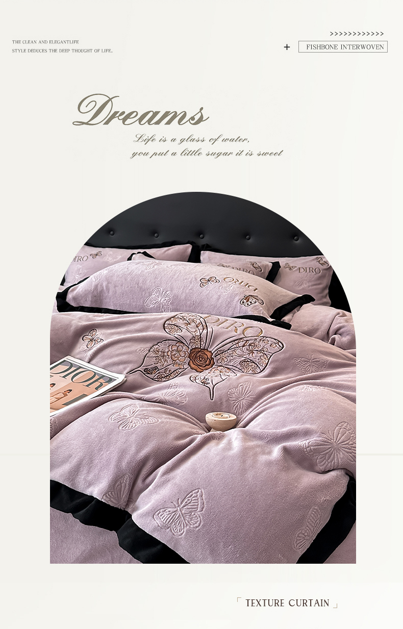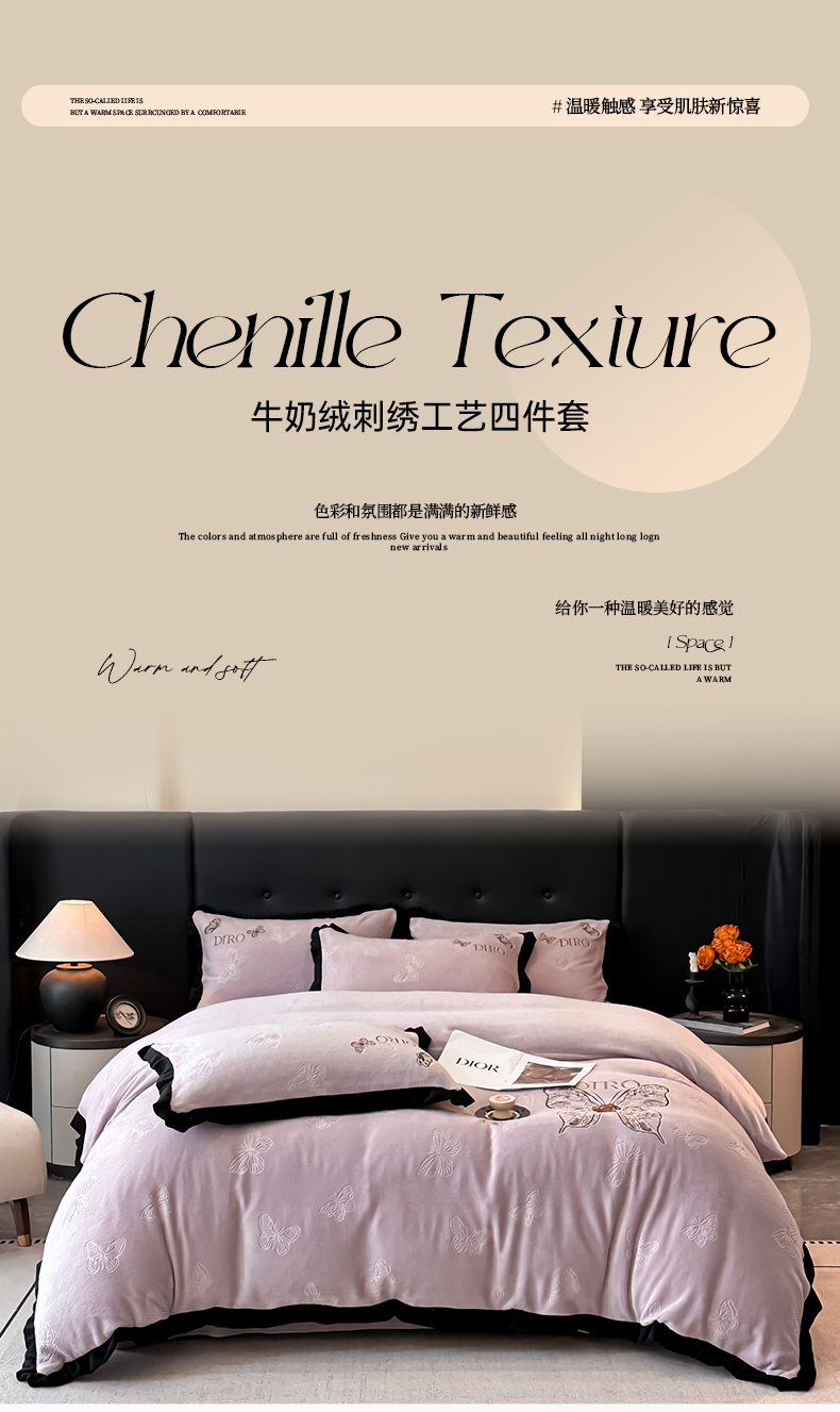 (总)金牛座家纺 2025新款立体雕花加厚牛奶绒刺绣拼接四件套【控价 售价请勿低于158】,花海,春见,蝶林,玫语