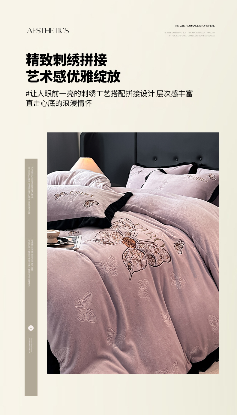 (总)金牛座家纺 2025新款加厚牛奶绒重工刺绣贴布绣四件套-蝶恋花,蝶恋花-嫩粉,蝶恋花-浅灰,蝶恋花-浅紫,蝶恋花-雾蓝,蝶恋花-杏色